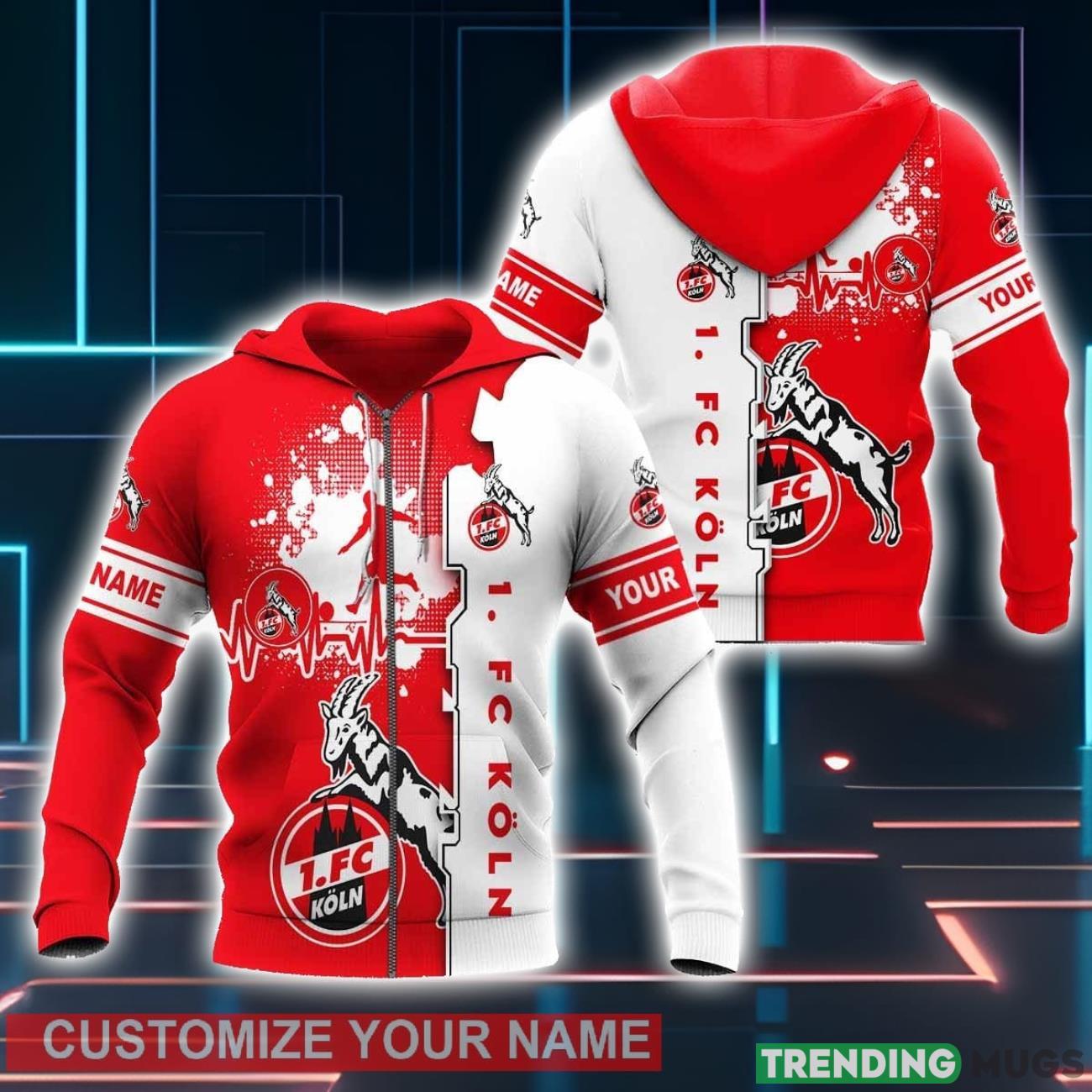 Not only is this hoodie functional and personalized, but it also boasts a stunning 3D design featuring the 1. FC Köln logo. The vibrant colors and intricate detailing make this hoodie a true standout piece, ensuring you’ll turn heads wherever you go.