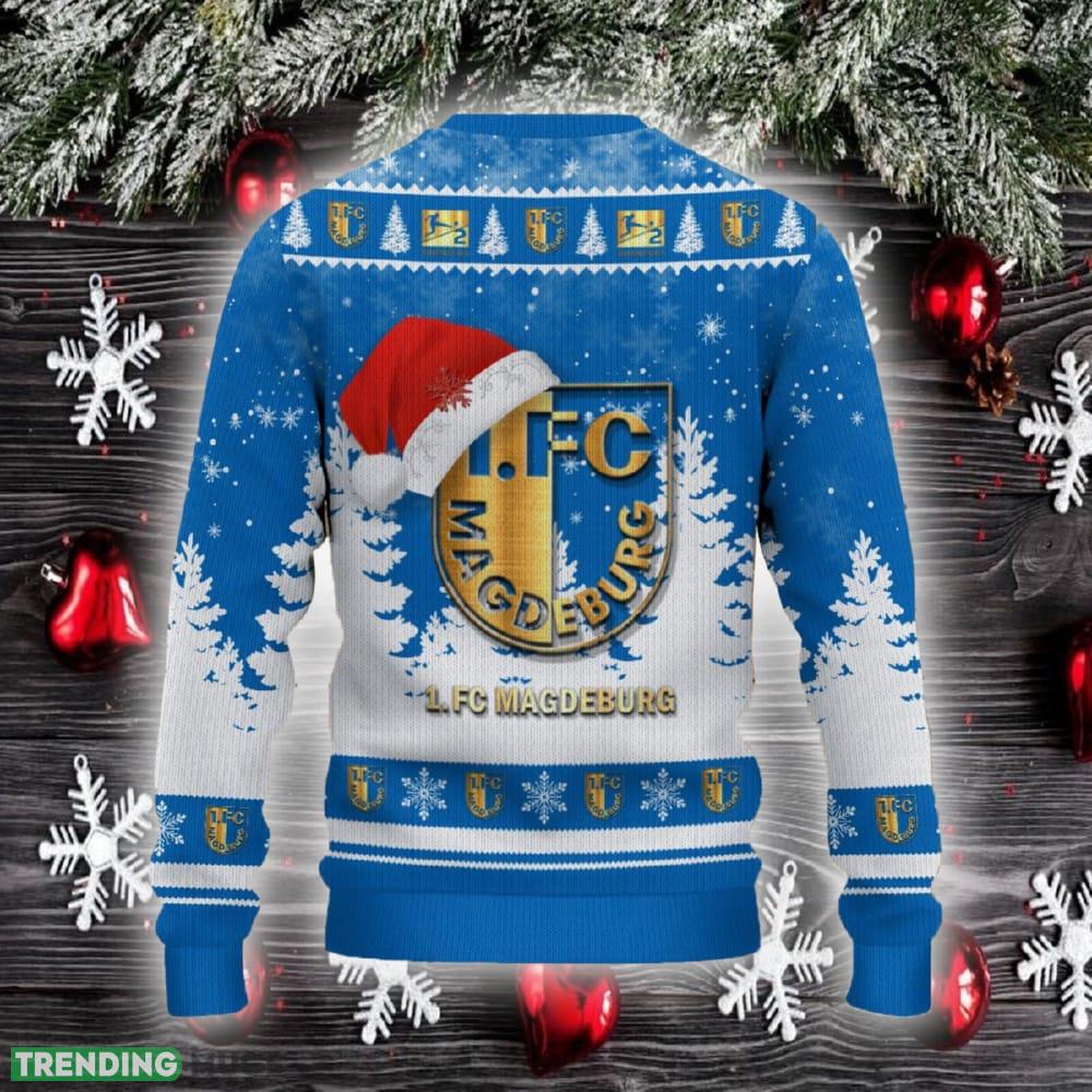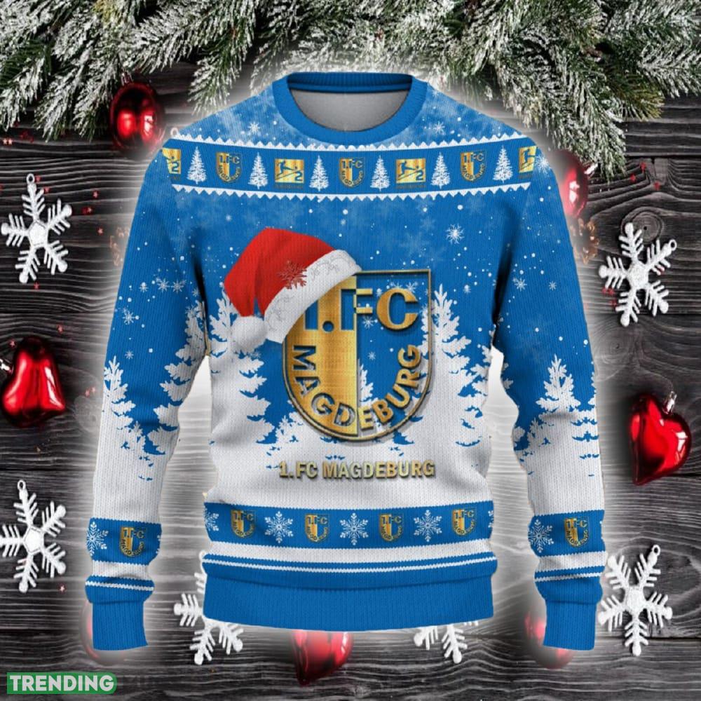 Get into the festive spirit with the 1 FC Magdeburg Ugly Christmas Sweater Santa Hat Logo! This trending Christmas gift is an absolute must-have for any devoted fan. With its eye-catching design featuring the iconic Santa hat logo, this sweater is the perfect way to showcase your love for your favorite team during the holiday season.