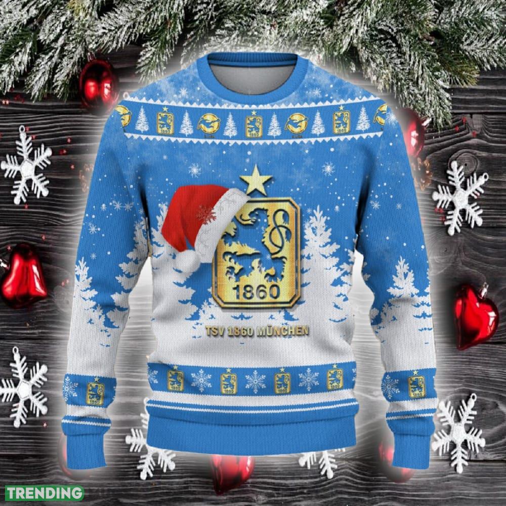 Get into the festive spirit with our 1860 Munich Ugly Christmas Sweater Santa Hat Logo! This trendy Christmas gift is a must-have for fans of the beloved 1860 Munich football club. Featuring a bold and eye-catching Santa hat logo, this sweater is the perfect way to show off your team pride during the holiday season.