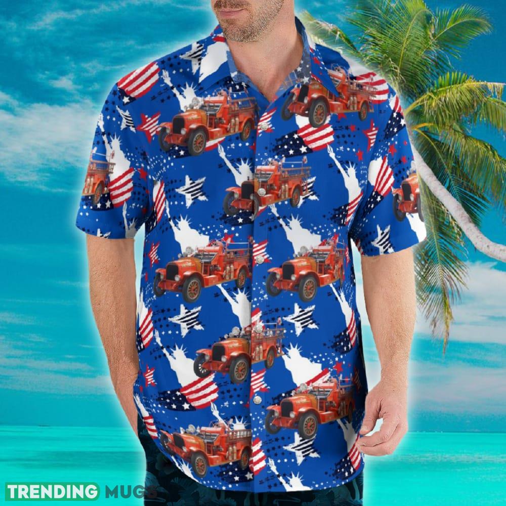 1923 La France Fire Engine 4th Of July Hawaiian Shirt Details: