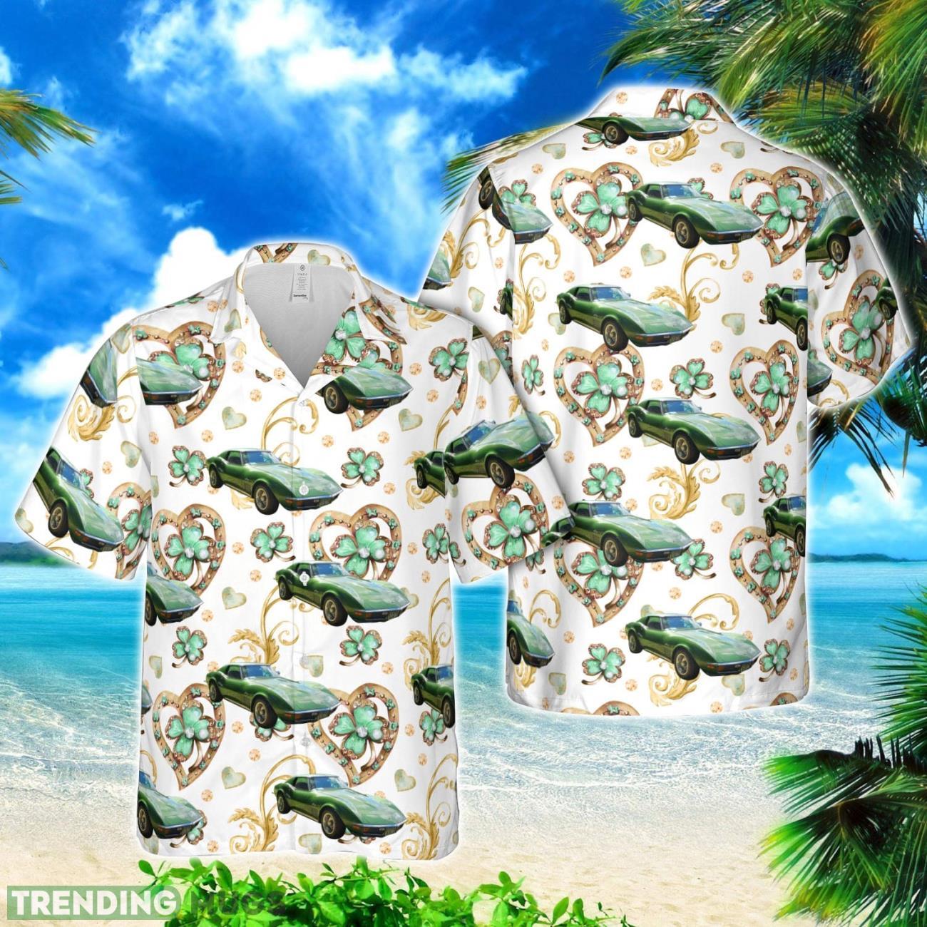 Celebrate St. Patrick’s Day in style with this unique 1972 Chevrolet Corvette Hawaiian shirt. Made from high-quality materials, this shirt features a vibrant green color scheme with a fun vintage car print. Stand out from the crowd and add a touch of retro flair to your wardrobe with this eye-catching piece. Perfect for parties, barbecues, or simply cruising around town, this shirt is sure to turn heads wherever you go. Upgrade your casual look and channel your inner car enthusiast with the 1972 Chevrolet Corvette Hawaiian shirt.