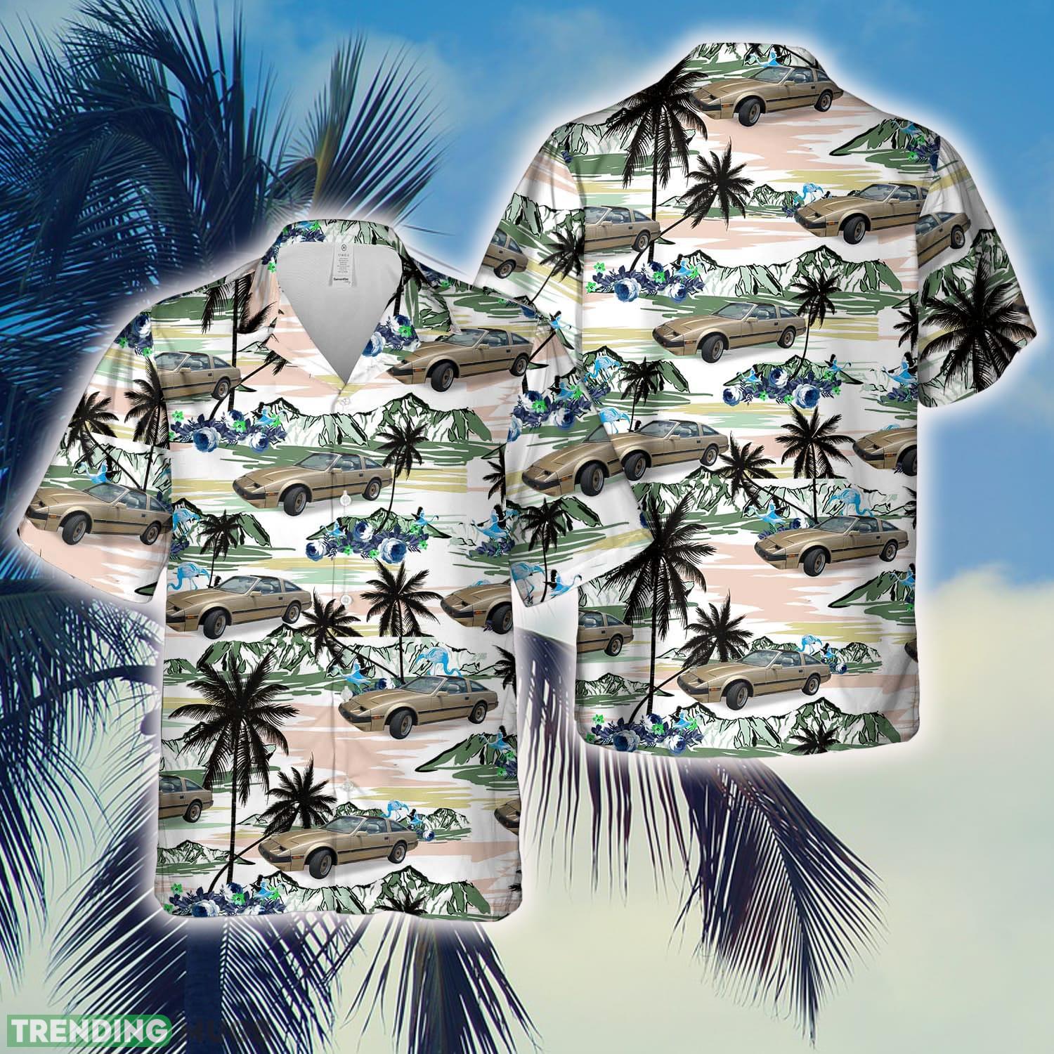 Transport yourself back to the vibrant 80s with our 1985 Nissan 300ZX Hawaiian Shirt! This iconic piece embodies the spirit of the era, combining the timeless appeal of Hawaiian patterns with the legendary Nissan 300ZX. Crafted with meticulous attention to detail, this shirt features a plethora of colorful palm trees, hibiscus flowers, and tropical motifs, seamlessly blending the essence of Hawaii with the sleekness of the 300ZX.