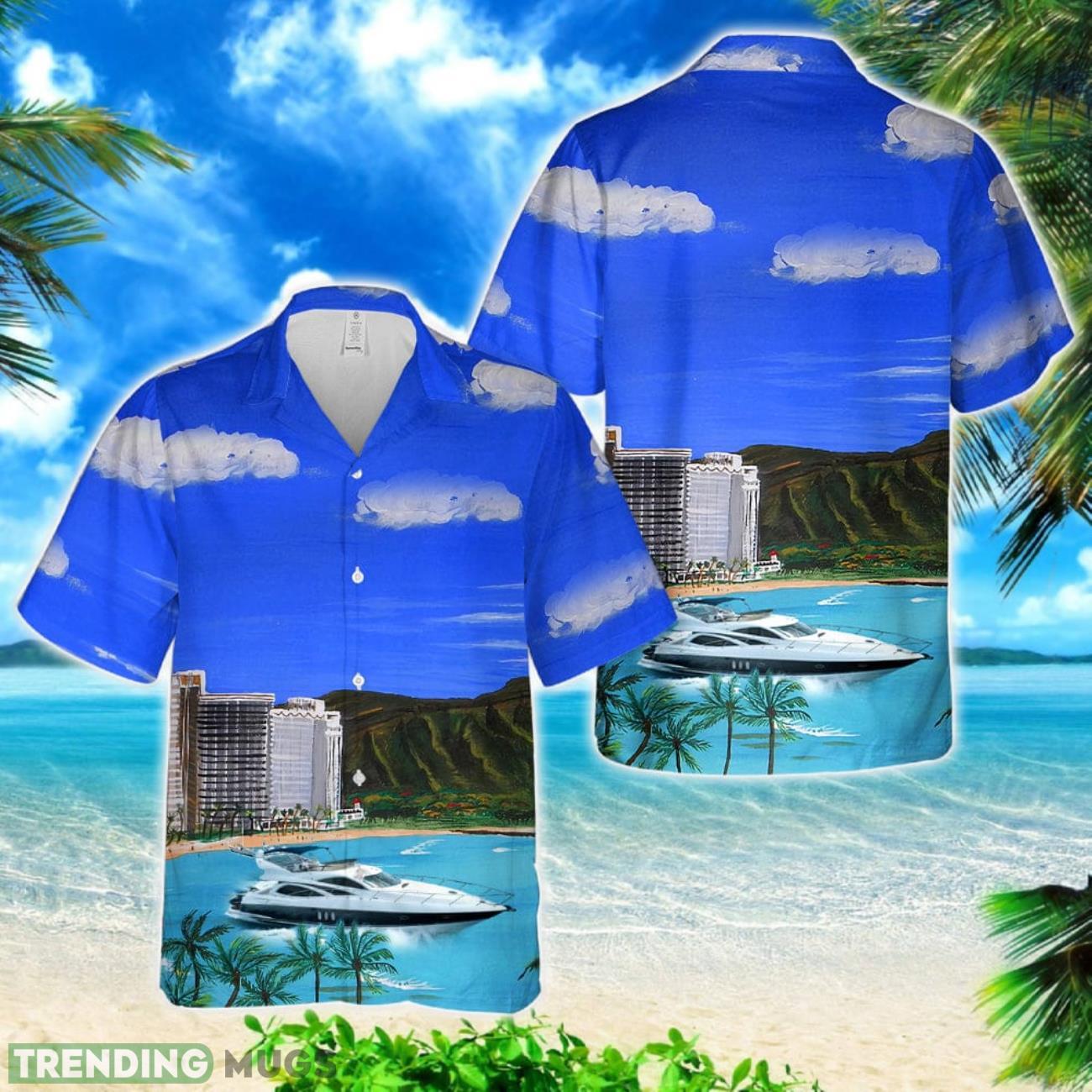 Embrace the luxurious lifestyle of the 2004 Sunseeker Manhattan 64 Motor Yacht Hawaiian Shirt. Crafted with the same attention to detail and sophistication as the iconic yacht itself, this shirt exudes both style and elegance. The vibrant Hawaiian print is reminiscent of the sun-soaked days spent cruising the open waters. Made with high-quality materials, this shirt is not just a fashion statement, but a symbol of refined taste and adventure. Elevate your wardrobe with this exclusive piece and sail away in style.