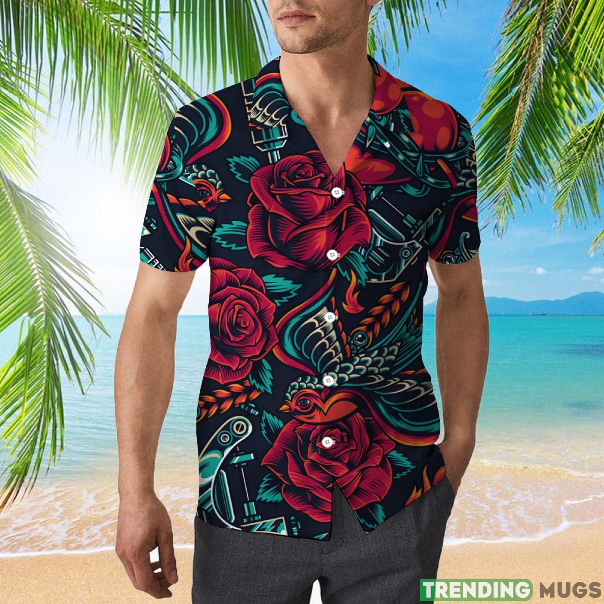 3D Roses and Bird Tattoo Unisex 3D Hawaiian Shirt Seashell Gift For Men And Women Holiday – 3D Roses and Bird Tattoo Unisex Hawaii Shirt, Halloween Day of the Dead Pattern Tops and Tees, all-over printed Hoodies, Halloween Gifts_1