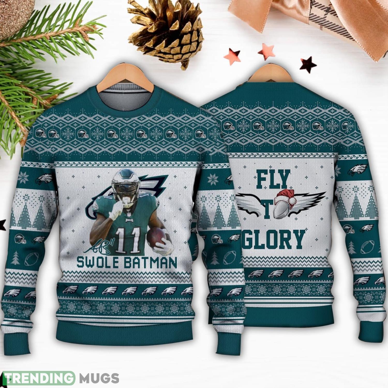 Not only does this sweater showcase your passion for the Philadelphia Eagles, but it also adds a touch of humor with the “Swole Batman” twist. It’s a fun and playful way to show your support while spreading holiday cheer.