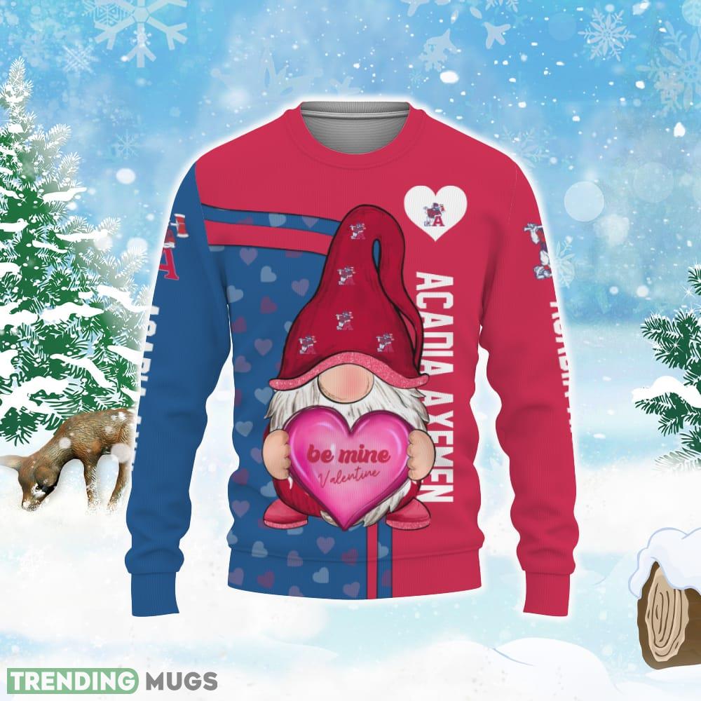 Acadia Axemen Be Mine Valentine Gnomes With Valentine Football American Valentine Day Knitted Xmas Sweater All Over Print Informations:
