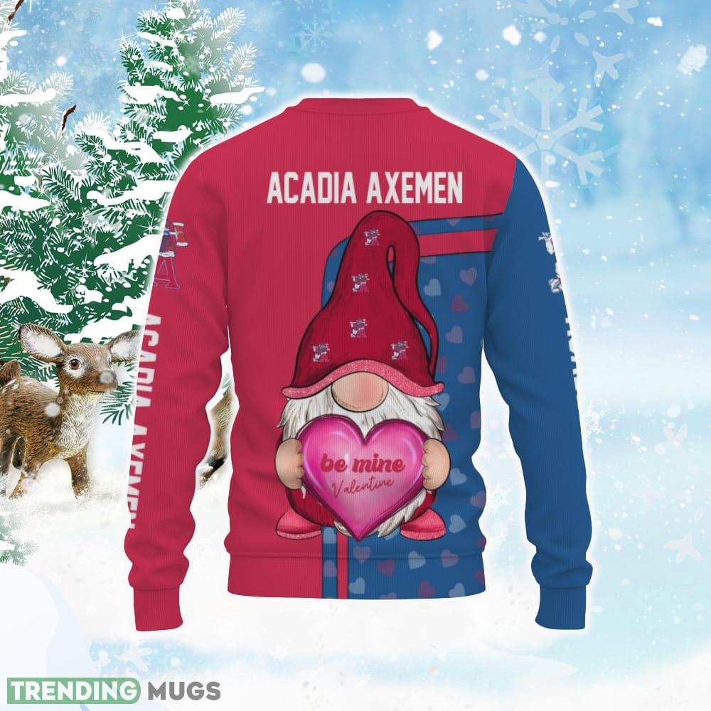 Get ready to spread some love and cheer this Valentine’s Day with our Acadia Axemen Be Mine Valentine Gnomes With Valentine Football American Valentine Day Knitted Xmas Sweater All Over Print! This uniquely designed sweater is the perfect way to celebrate the most romantic day of the year while showing off your love for the Acadia Axemen.