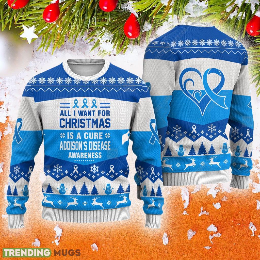 Addison’s Disease Awareness All I Want For Is A Cure Animals Ugly Christmas Sweater AOP Gift For Men And Women Informations: