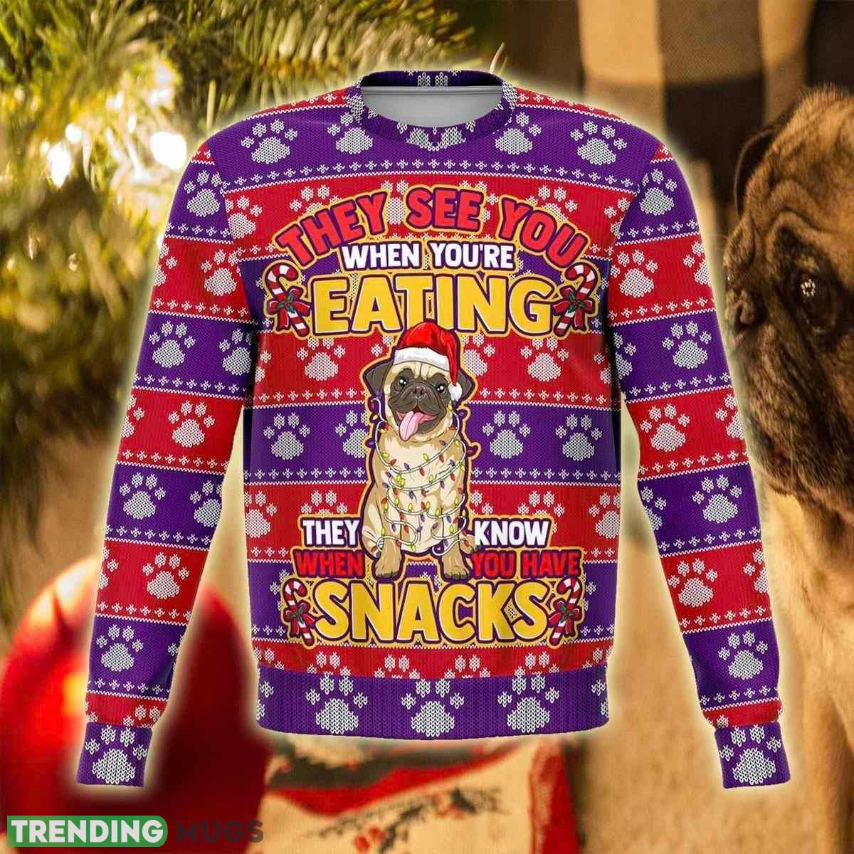 Some of the Adorable Pug Snacks 3D Ugly Christmas Sweater Perfect Holiday Gift photos