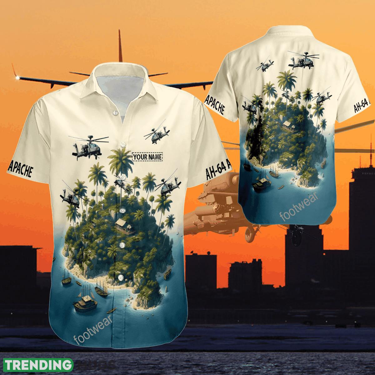 Aircraft Island AH-64 Apache Hawaiian Shirt Hot Trending For Summer Custom Name Gift Details: