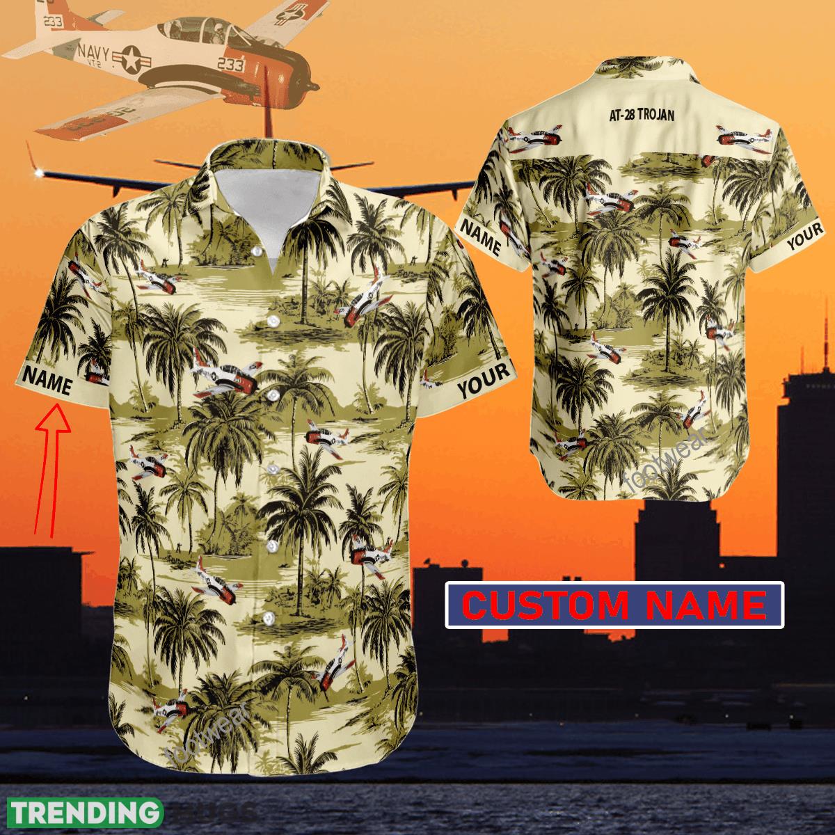 Aircraft Palms Tree Coconut AT 28 Trojan Hawaiian Shirt Hot Trending For Summer Custom Name Gift Hawaiian Shirt