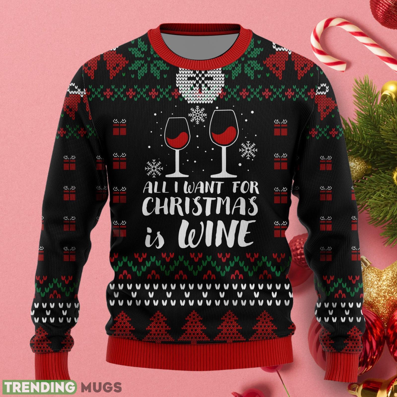 All I Want For Christmas Is Wine Drinking Lovers Ugly Christmas Sweater Unisex 3D Sweater Christmas Gift 3D Sweater