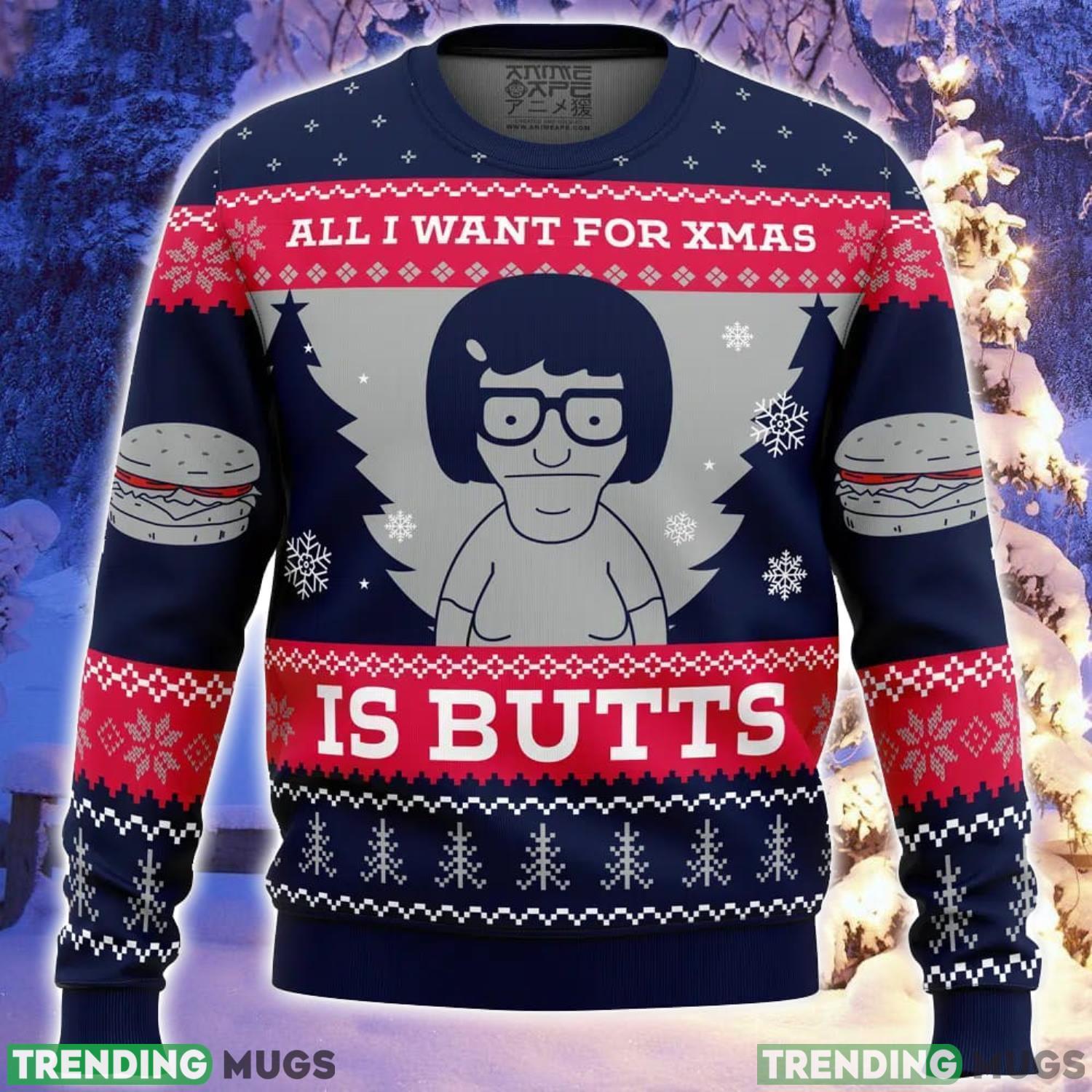 All I Want For Xmas is Butts Bob’s Burgers Ugly Christmas Sweater Holiday Gift Christmas Sweater Informations: