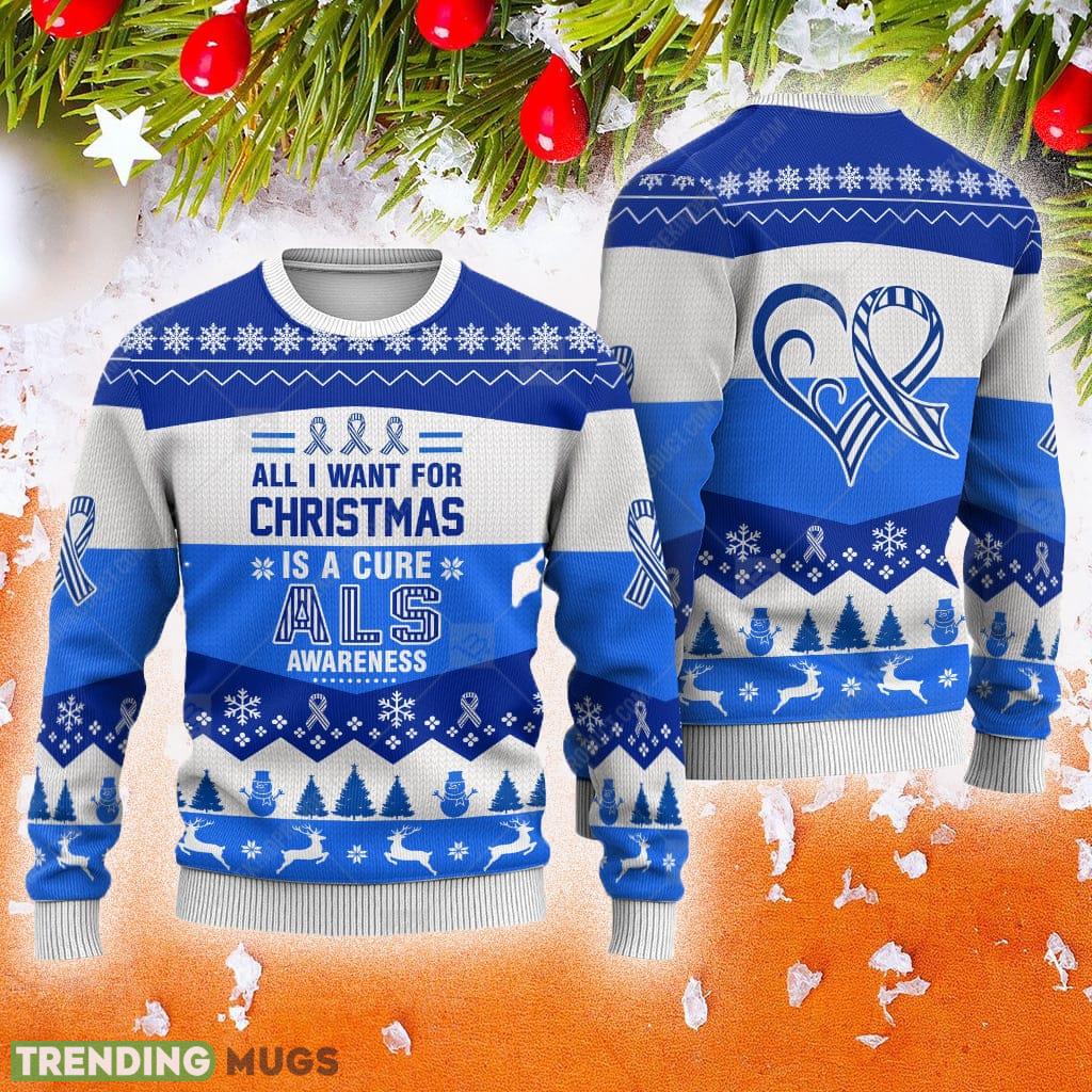 ALS Awareness All I Want For Is A Cure Animals Ugly Christmas Sweater AOP Gift For Men And Women Informations: