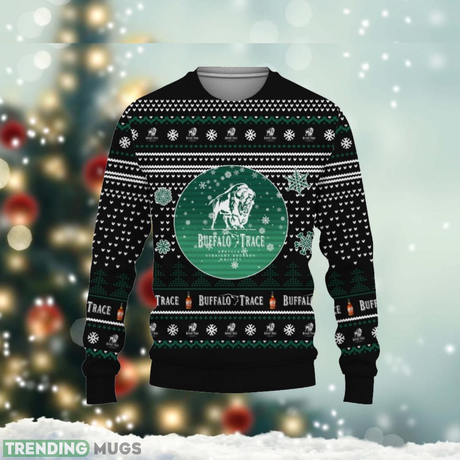 Crafted with utmost care, this eye-catching sweater features a unique design that combines the finest elements of Christmas joy and whiskey appreciation. The iconic American buffalo image adorns the front, symbolizing the authenticity and heritage of Buffalo Trace. The cozy black fabric ensures comfort while the playful Christmas patterns add a touch of festive spirit.