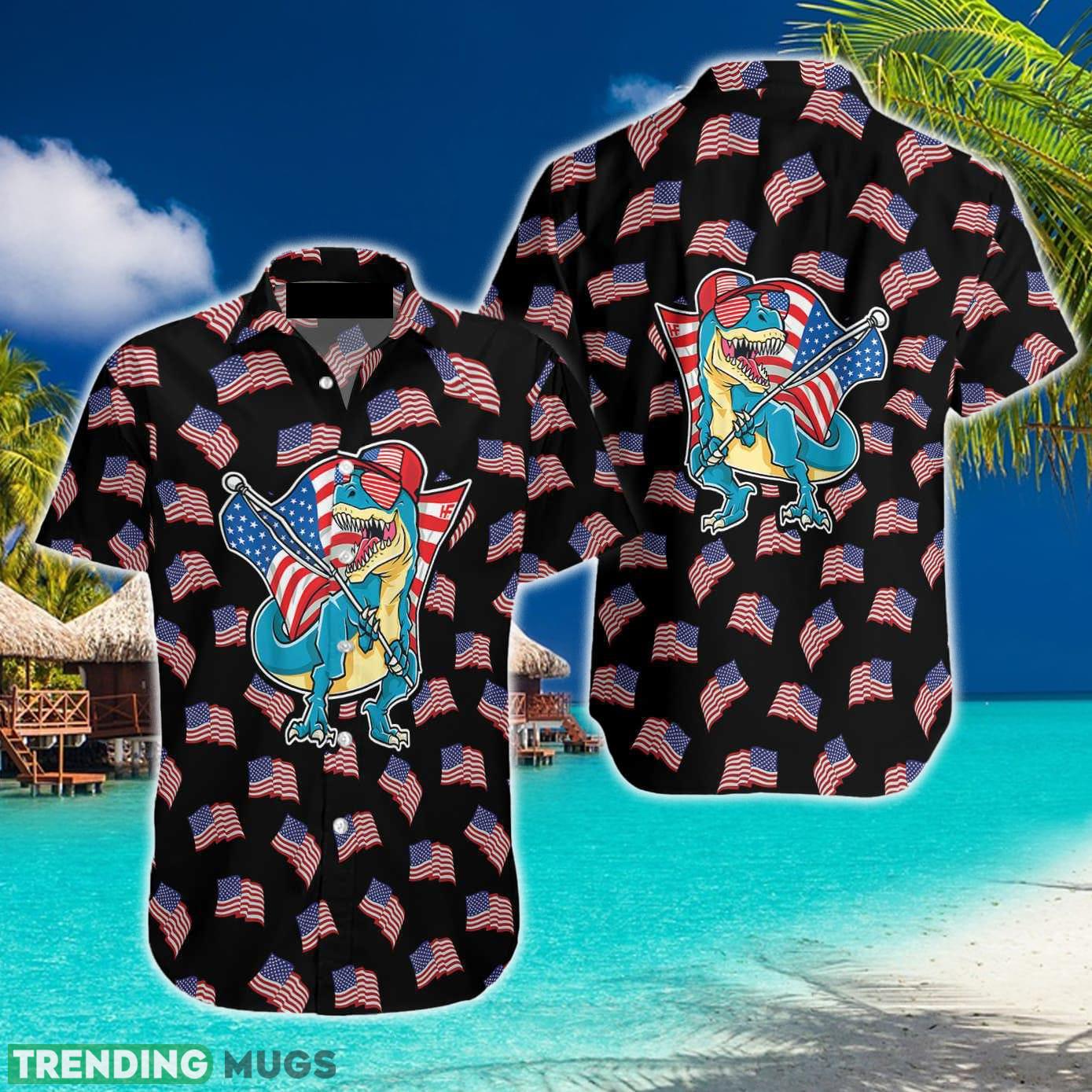American Flag T-Rex Hawaiian Shirt Summer Beach Gift For Men And Women Details: