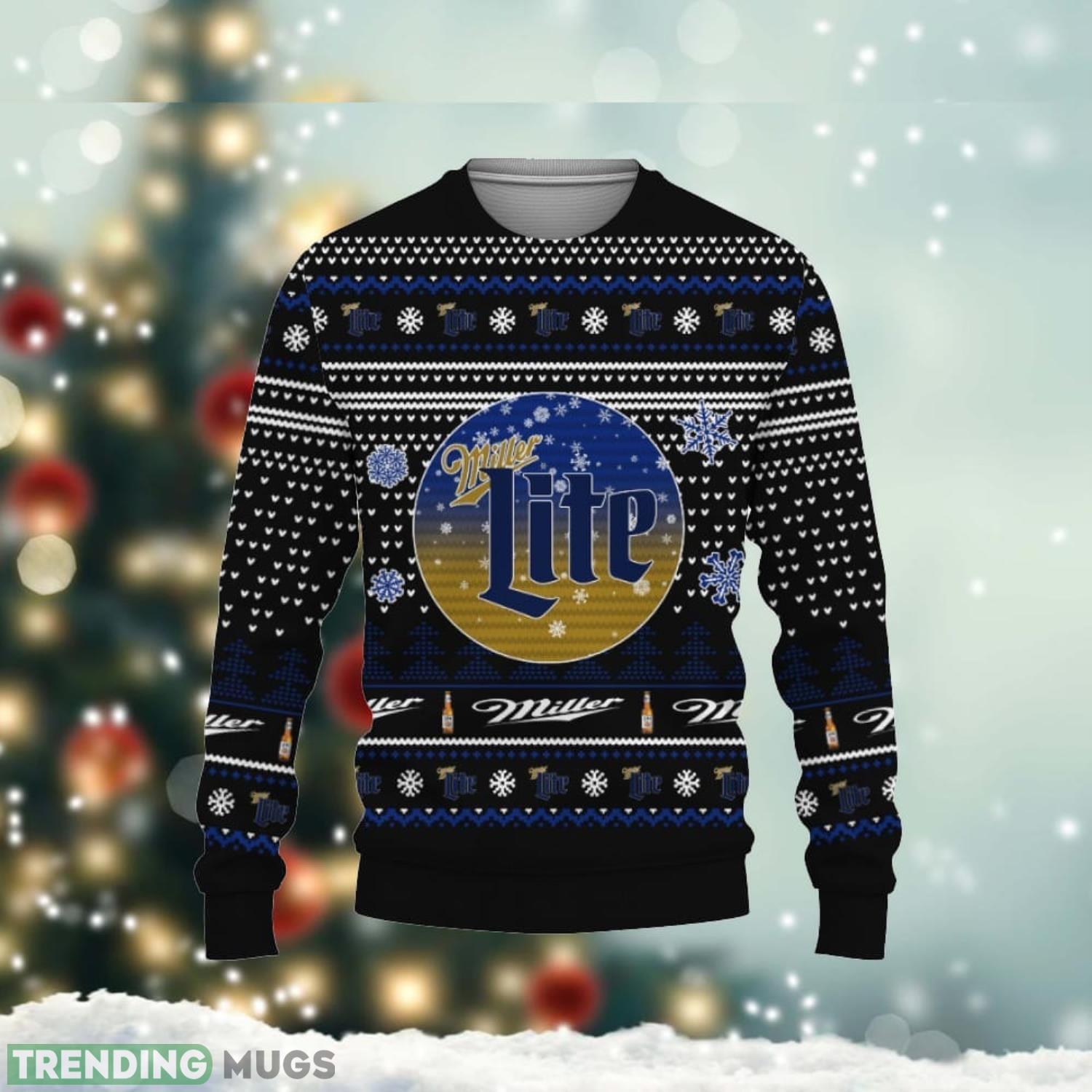 Crafted with utmost attention to detail, this sweater features a stylish black design adorned with intricate Christmas-themed patterns. The iconic Miller Lite logo takes center stage, proudly displaying your affinity for this classic American beer.