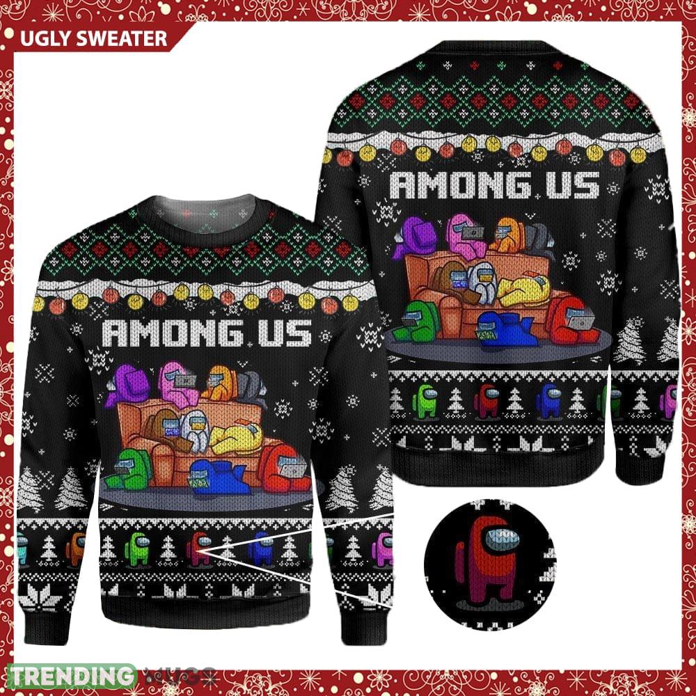 Crafted with the highest quality materials, this sweater guarantees both comfort and style. The all-over print features the notorious Among Us impostors in a playful and quirky manner, making it a perfect conversation starter at any holiday gathering. Whether you’re attending an ugly sweater party or simply want to make a statement, this sweater is your go-to choice.