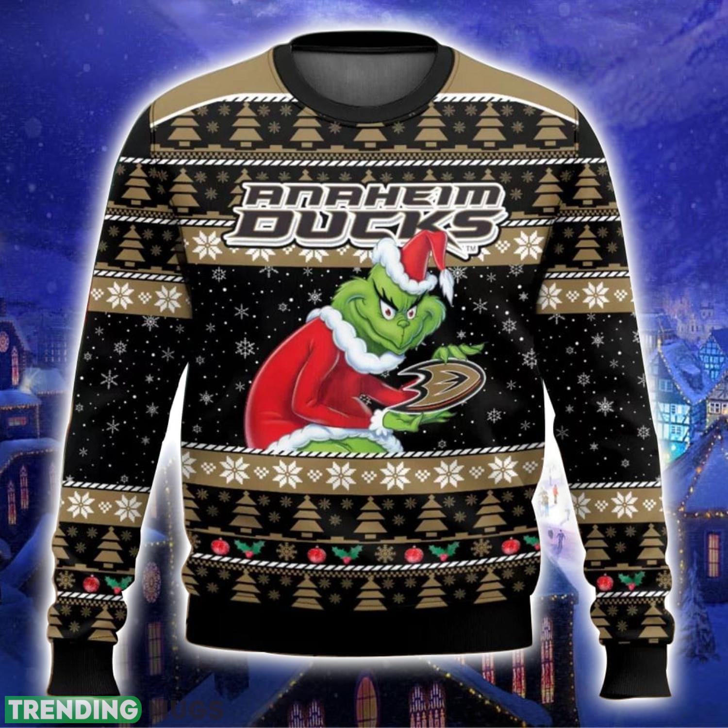 Anaheim Ducks Grinch Ugly Christmas Sweater Trending Sweater For 2023 Christmas Holidays Product Photo 1