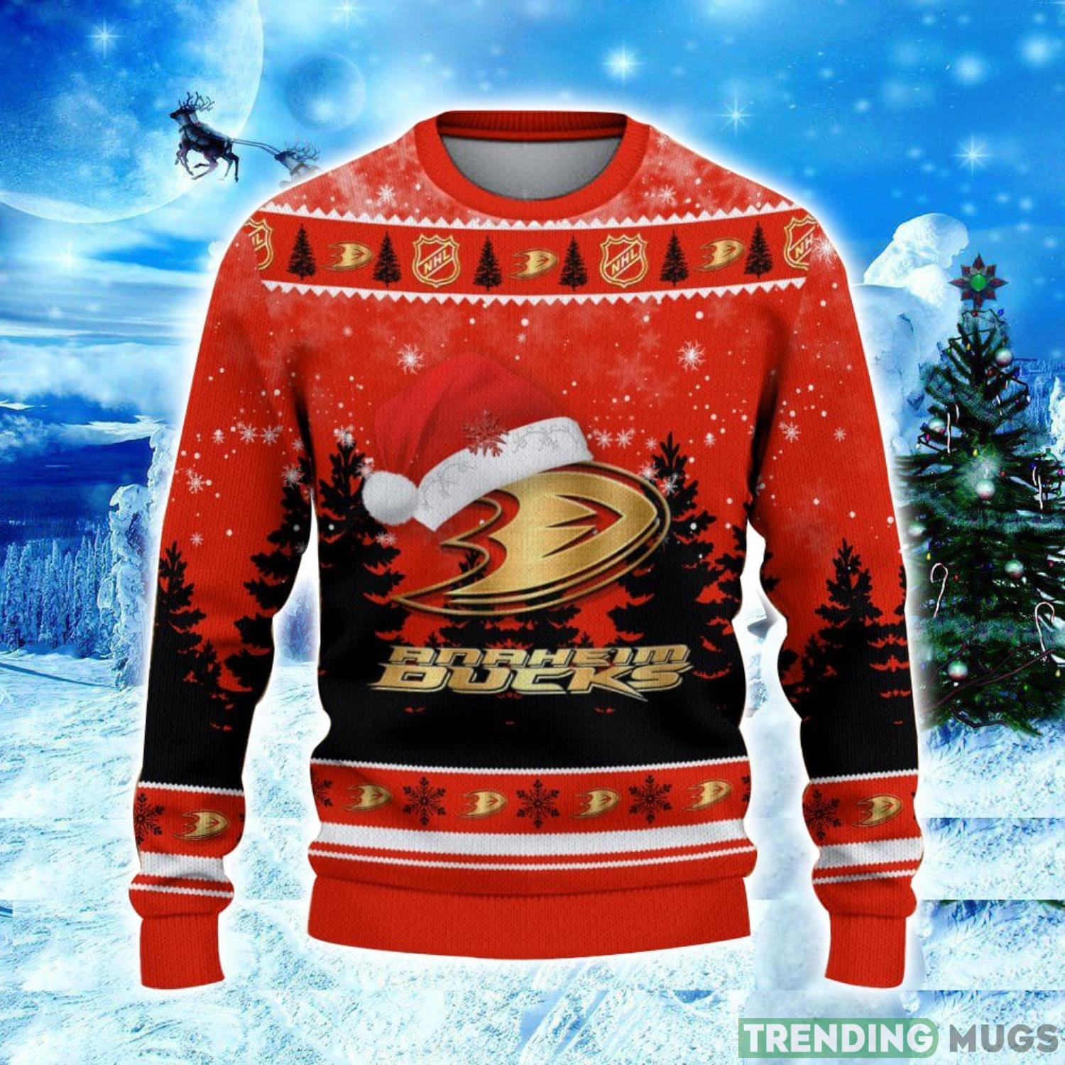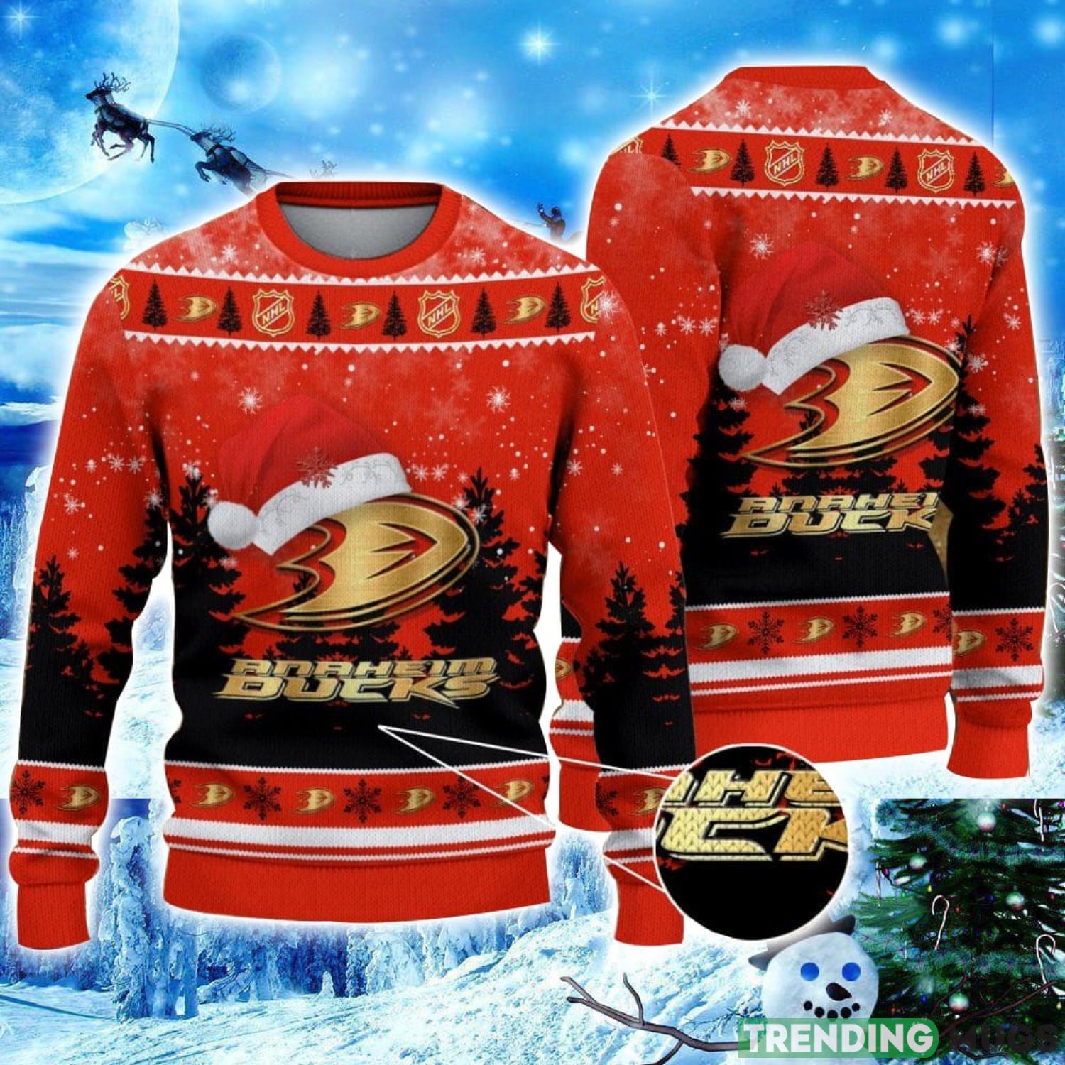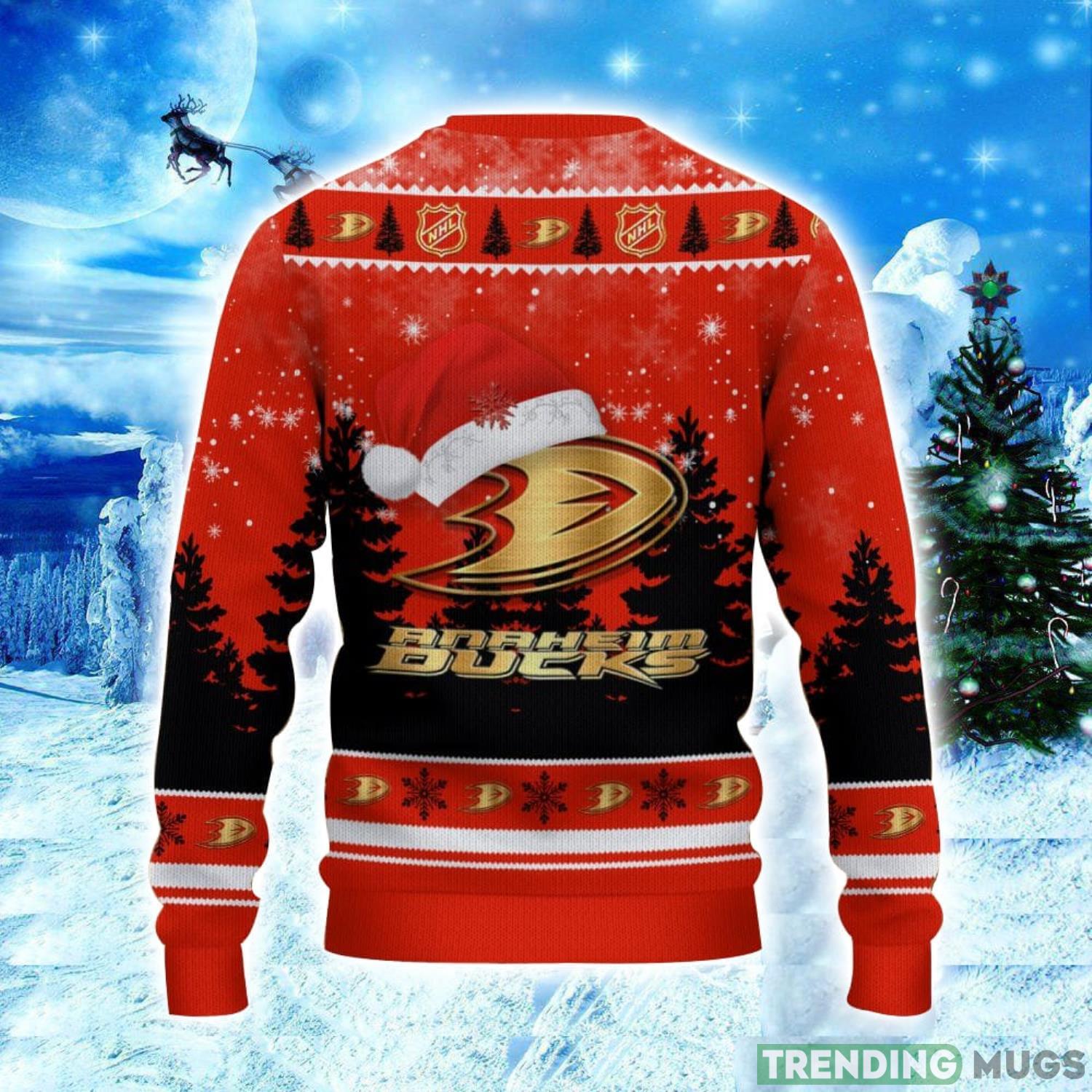 Anaheim Ducks Logo Wearing Santa Hat Christmas Gift Ugly Christmas Sweater Christmas Gift Ideas Product Photo 1