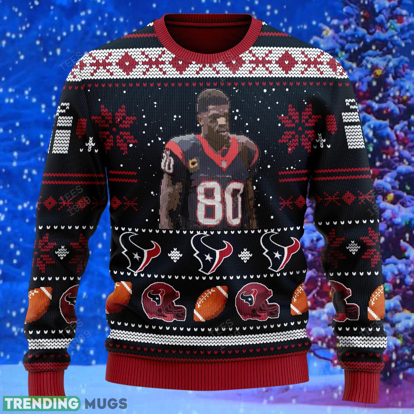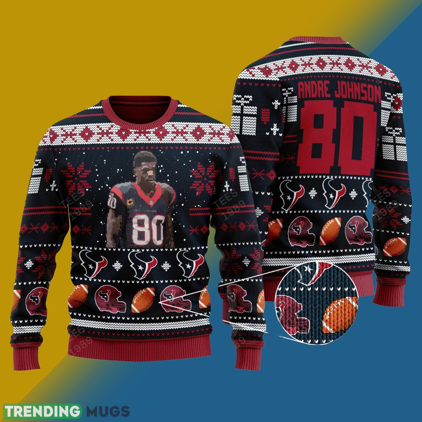 Stay warm and festive this holiday season with the Andre Johnson Houston Texans NFL Knitted Xmas Sweater Gift for both men and women. This eye-catching sweater is the perfect way to show off your team spirit while staying cozy and comfortable. Crafted with premium quality materials, it features a charming design that incorporates the iconic Houston Texans logo, making it a must-have for any football fan.