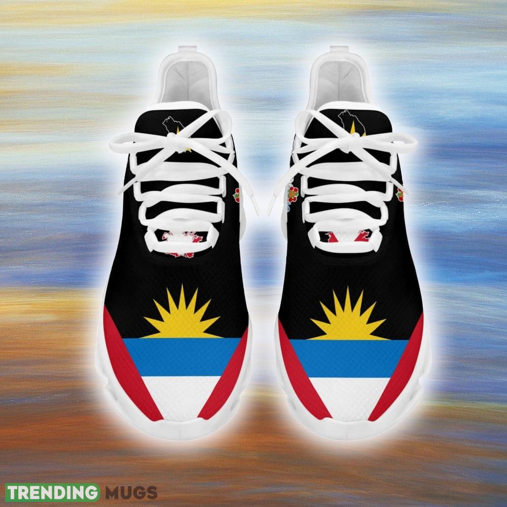 This Antigua Barbuda Clunky Max Soul Shoes For Men And Women Sports Sneakers is a breathable, lightweight, and comfortable casual outdoor shoe that has a unique design. It is made of a mesh fabric which makes it sweat absorbent and breathable, while the rubber bottom ensures traction, comfort, and durability. It is available in two colors: black or white sole. There are two styles of shoelace holes so you can choose your preference.