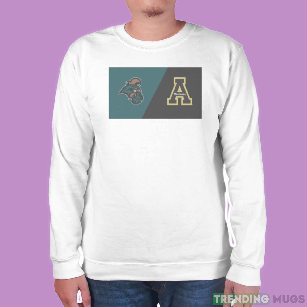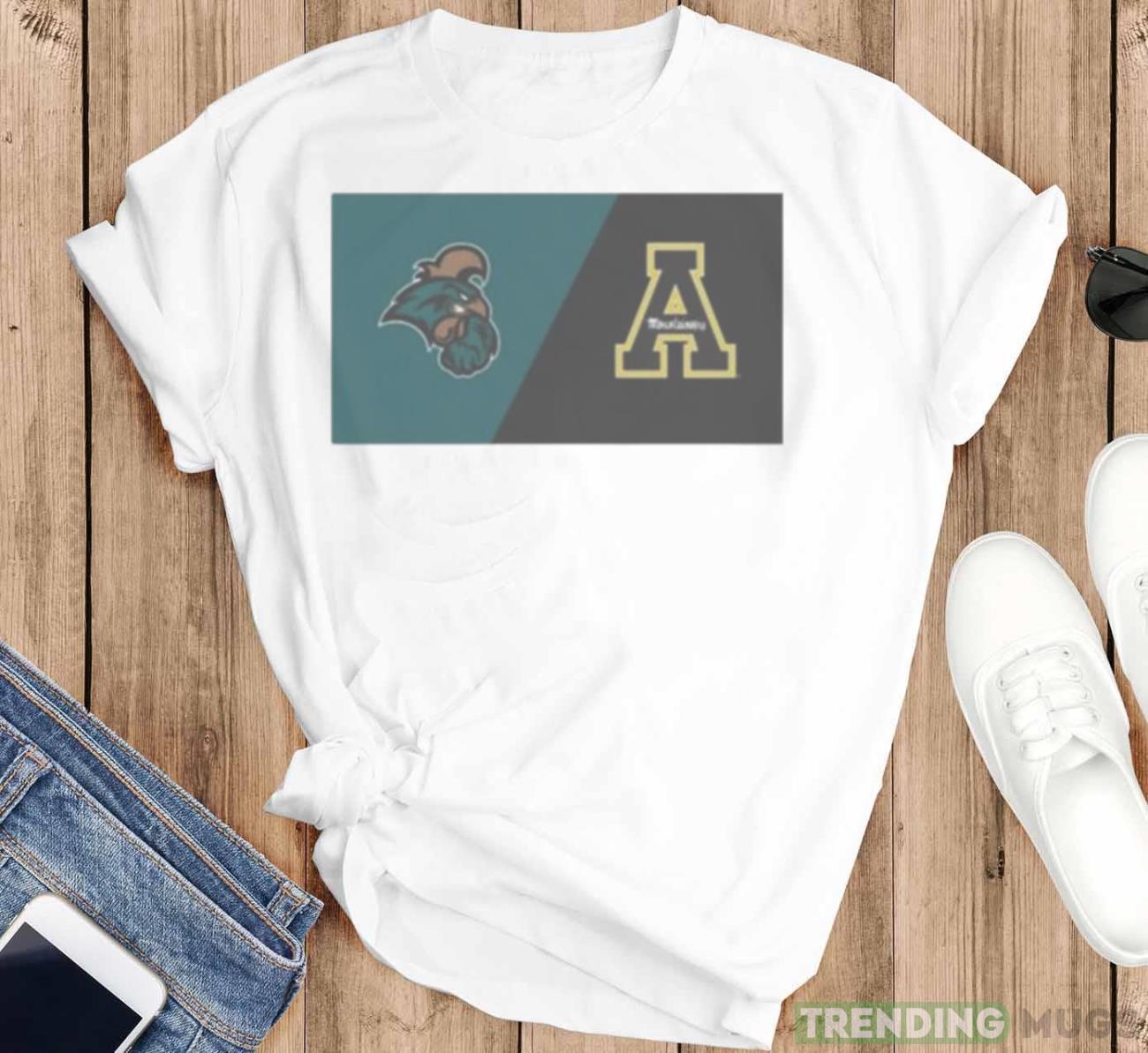 Featuring the Appalachian State and Coastal Carolina logos proudly displayed on the front, this t-shirt showcases your unwavering loyalty and love for your team. The vibrant colors and eye-catching design will make you stand out from the crowd and let everyone know which side you’re cheering for.