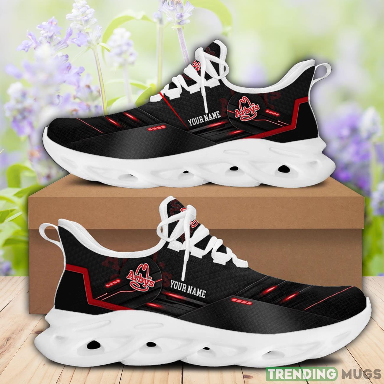 This Arby’s Max Soul Shoes Sneakers Custom Name Logo Chunky Running Shoes For Men Women is a breathable, lightweight, and comfortable casual outdoor shoe that has a unique design. It is made of a mesh fabric which makes it sweat absorbent and breathable, while the rubber bottom ensures traction, comfort, and durability. It is available in two colors: black or white sole. There are two styles of shoelace holes so you can choose your preference.