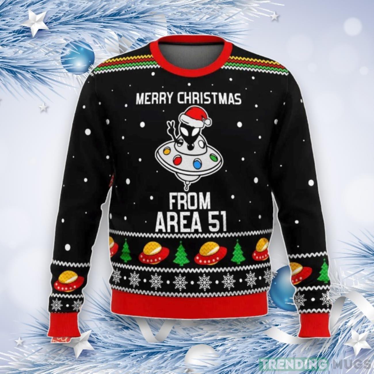 Don’t miss out on the opportunity to add some extraterrestrial cheer to your festive wardrobe this holiday season. Order your very own Area Aliens Ugly Sweater Merry Xmas Festive Design now and get ready to celebrate in style!