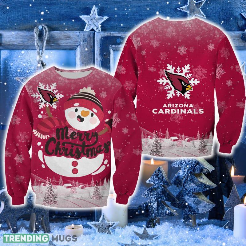 Crafted with utmost attention to detail, this festive sweater features a cheerful snowman design adorned with the iconic Arizona Cardinals logo. With its vibrant colors and intricate patterns, it’s sure to catch everyone’s eye at any holiday gathering.