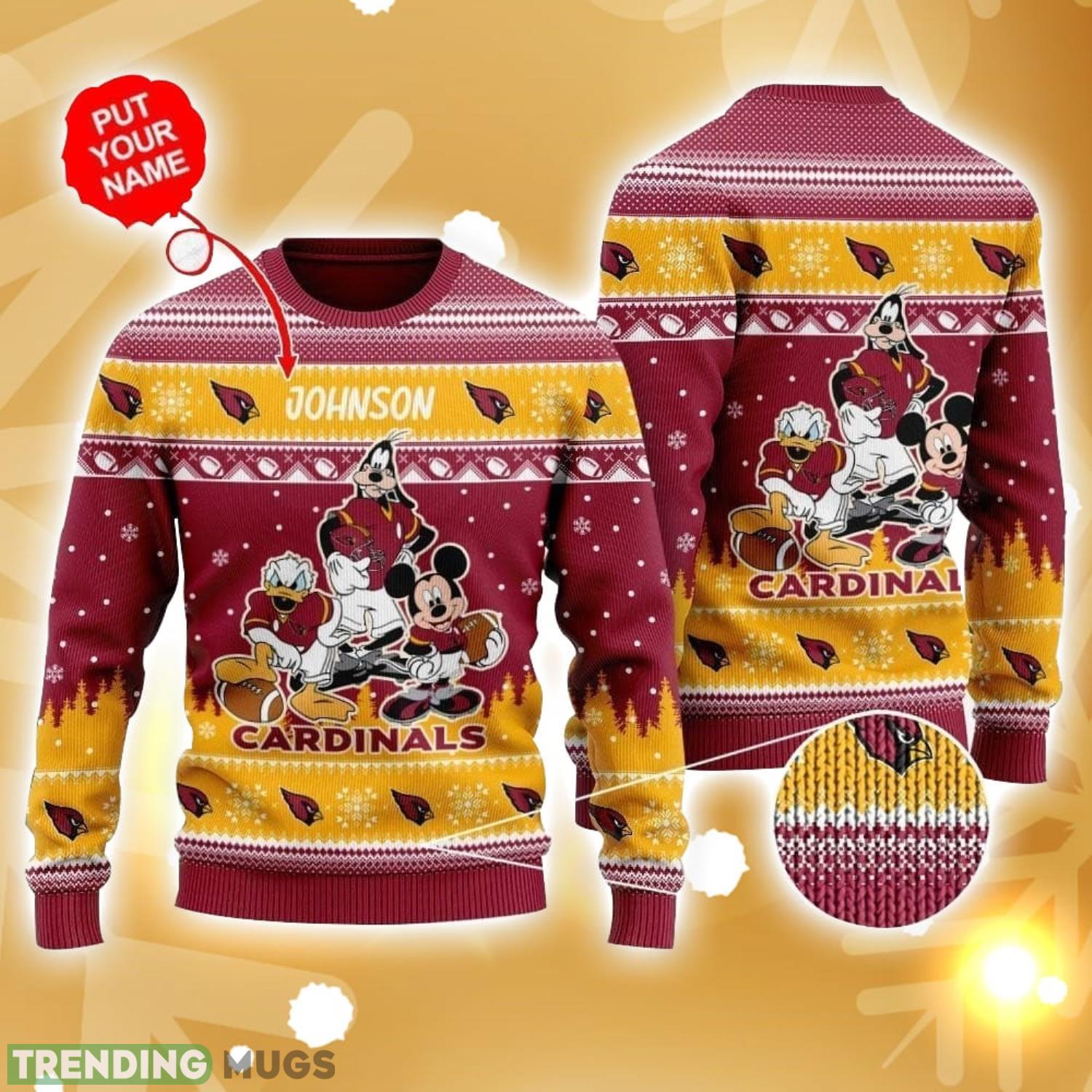 Arizona Cardinals Disney Donald Duck Mickey Mouse Goofy Custom Name Sport Fans Christmas Gift Ugly Christmas Sweater