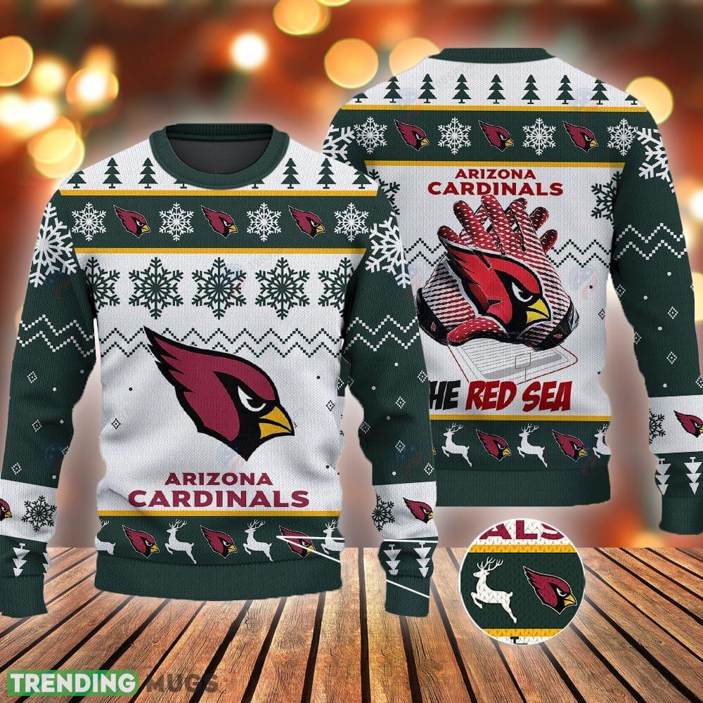 Stay warm and cozy this holiday season while showing off your love for the Arizona Cardinals with our Arizona Cardinals Football Gloves Pattern Knitted Green 3D Sweater Gift Christmas.