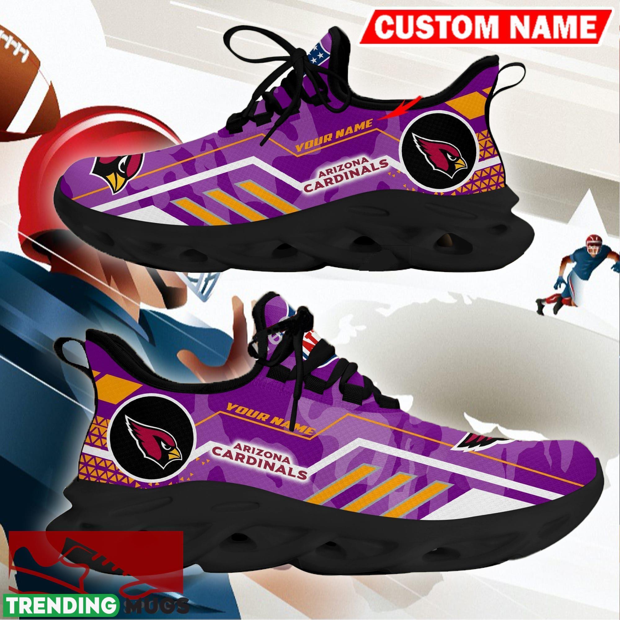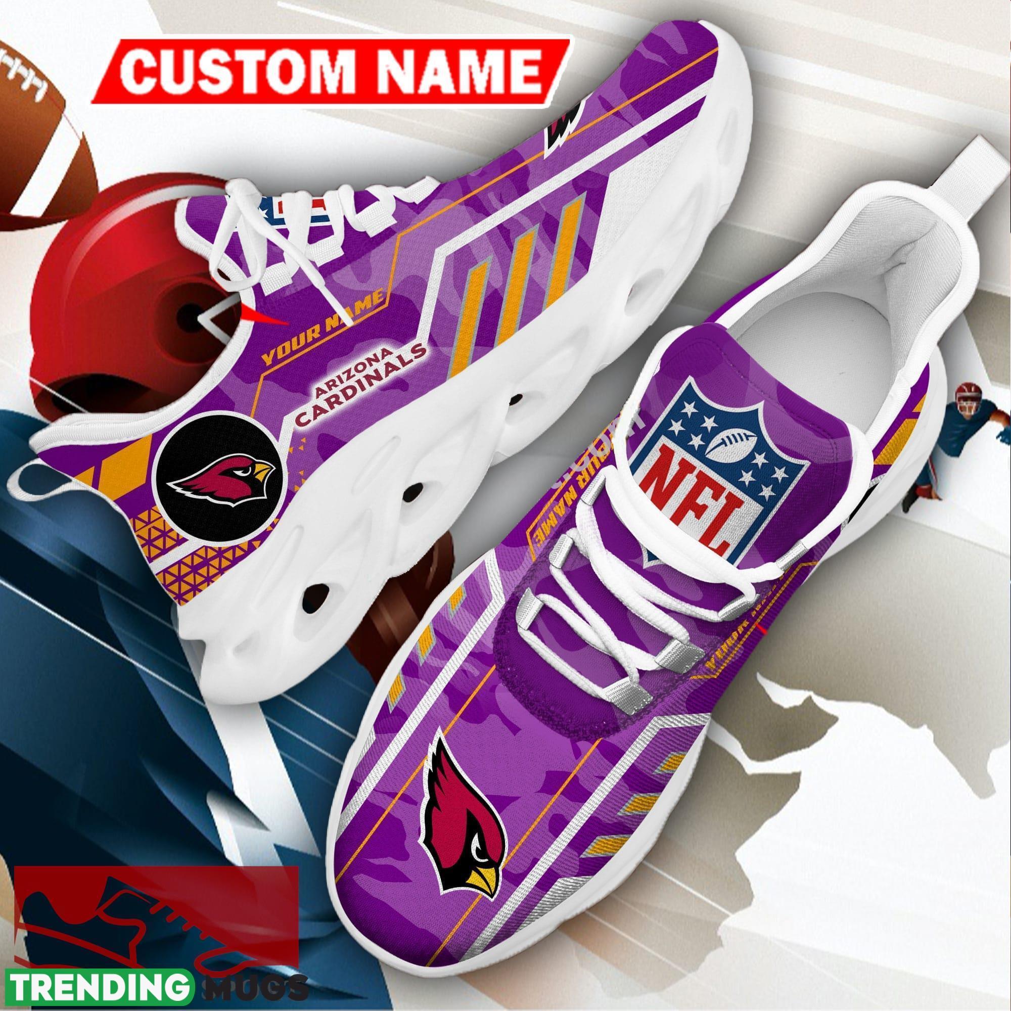 Crafted with utmost attention to detail, these sneakers feature the iconic Arizona Cardinals NFL logo prominently displayed on the side, making it clear where your allegiance lies. The bold camo purple color adds a unique touch of personality to your outfit, making these shoes a standout choice for any fan.