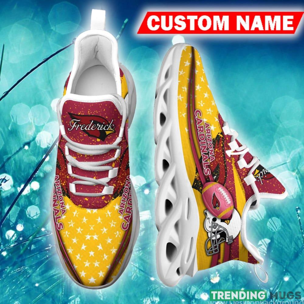 Featuring a bold all-over print that showcases the iconic Arizona Cardinals logo, these sneakers are a true statement piece. The custom name detail adds a personalized touch, making them a unique and exclusive addition to your footwear collection.