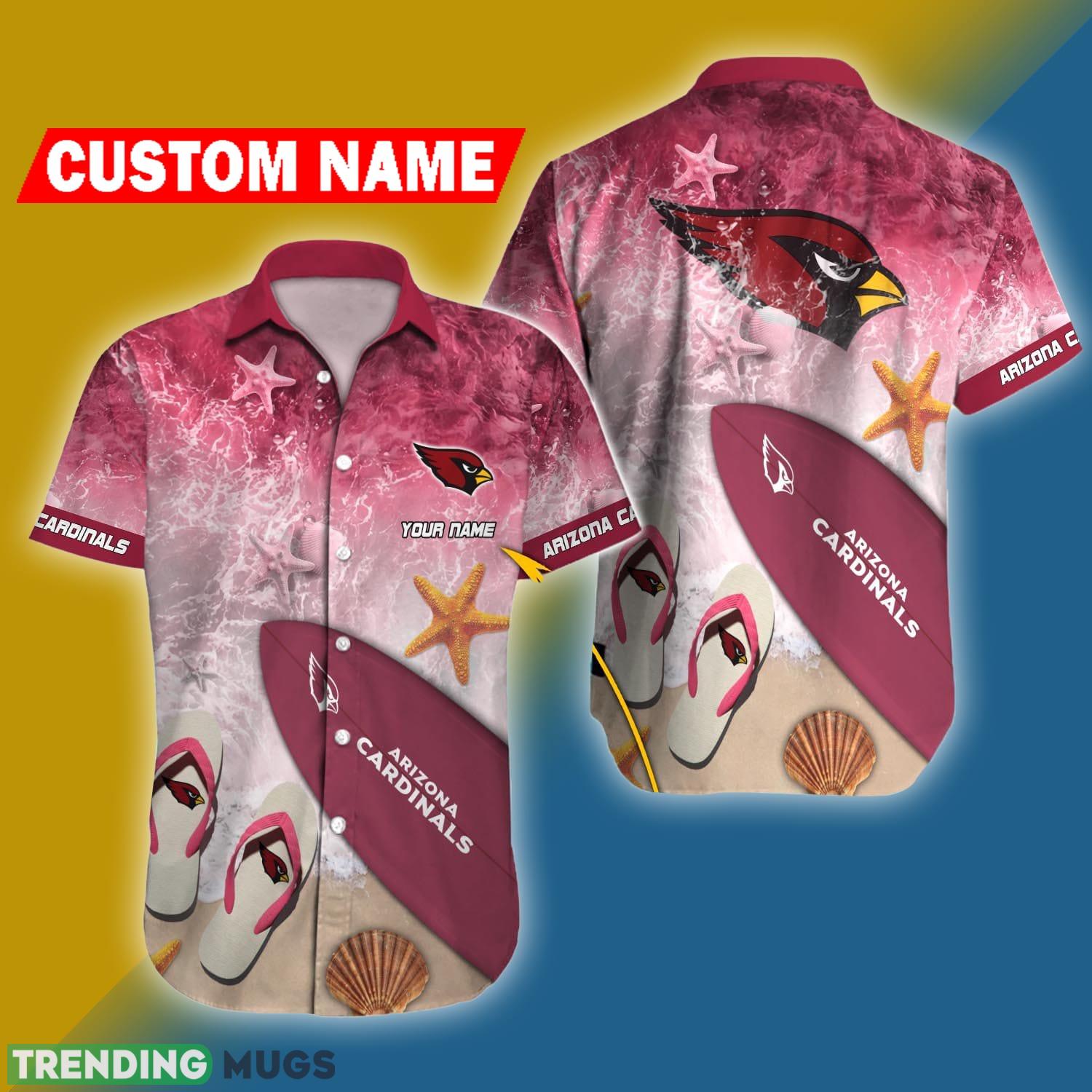 Crafted with meticulous attention to detail, this custom shirt features a vibrant surfboard pattern that captures the essence of the ocean. The Arizona Cardinals logo proudly stands out, making it clear where your loyalty lies. But what truly sets this shirt apart is the option to personalize it with your own name, adding a special touch that makes it uniquely yours.