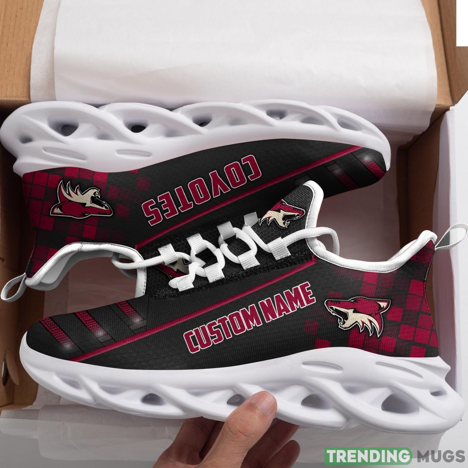 Made for both men and women, these shoes are available in a range of sizes to guarantee a perfect fit for every fan. The Arizona Coyotes Custom Name Max Soul Sneaker Shoes feature a high-quality construction that will withstand the test of time, making them a long-lasting addition to your collection.