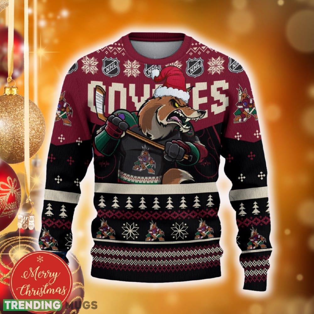 Featuring an eye-catching design that combines the Coyotes’ iconic logo with a touch of Christmas spirit, this sweater is a must-have for any true supporter. The angry expression on the logo adds a hilarious twist, making it a conversation starter at every holiday gathering.