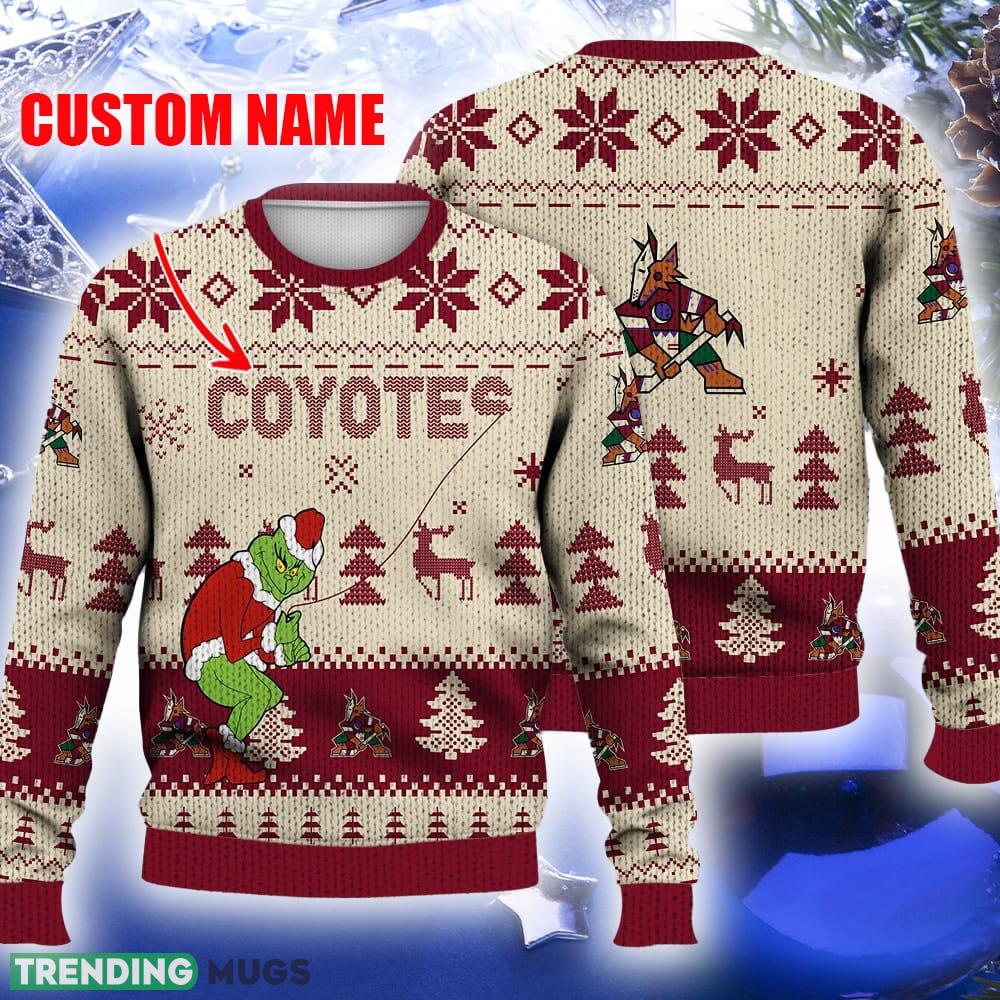 Arizona Coyotes Ugly Christmas Sweater Grinch Custom Ice Hockey NHL Gift For Christmas Holidays Custom Name