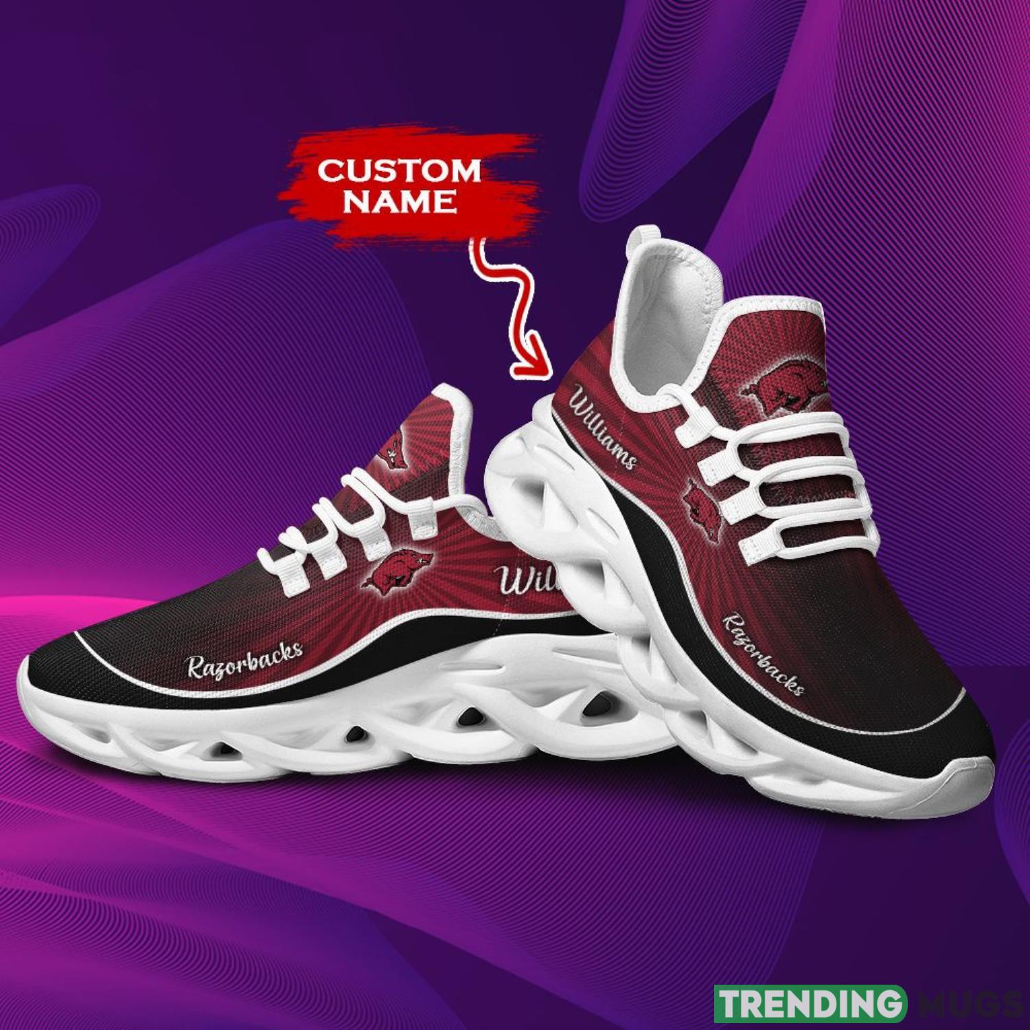 Get ready to show off your team spirit with the Arkansas Razorbacks Custom Name Personalized Max Soul Sneakers! These running sports shoes are the perfect way to showcase your love for the Razorbacks while staying stylish and comfortable.