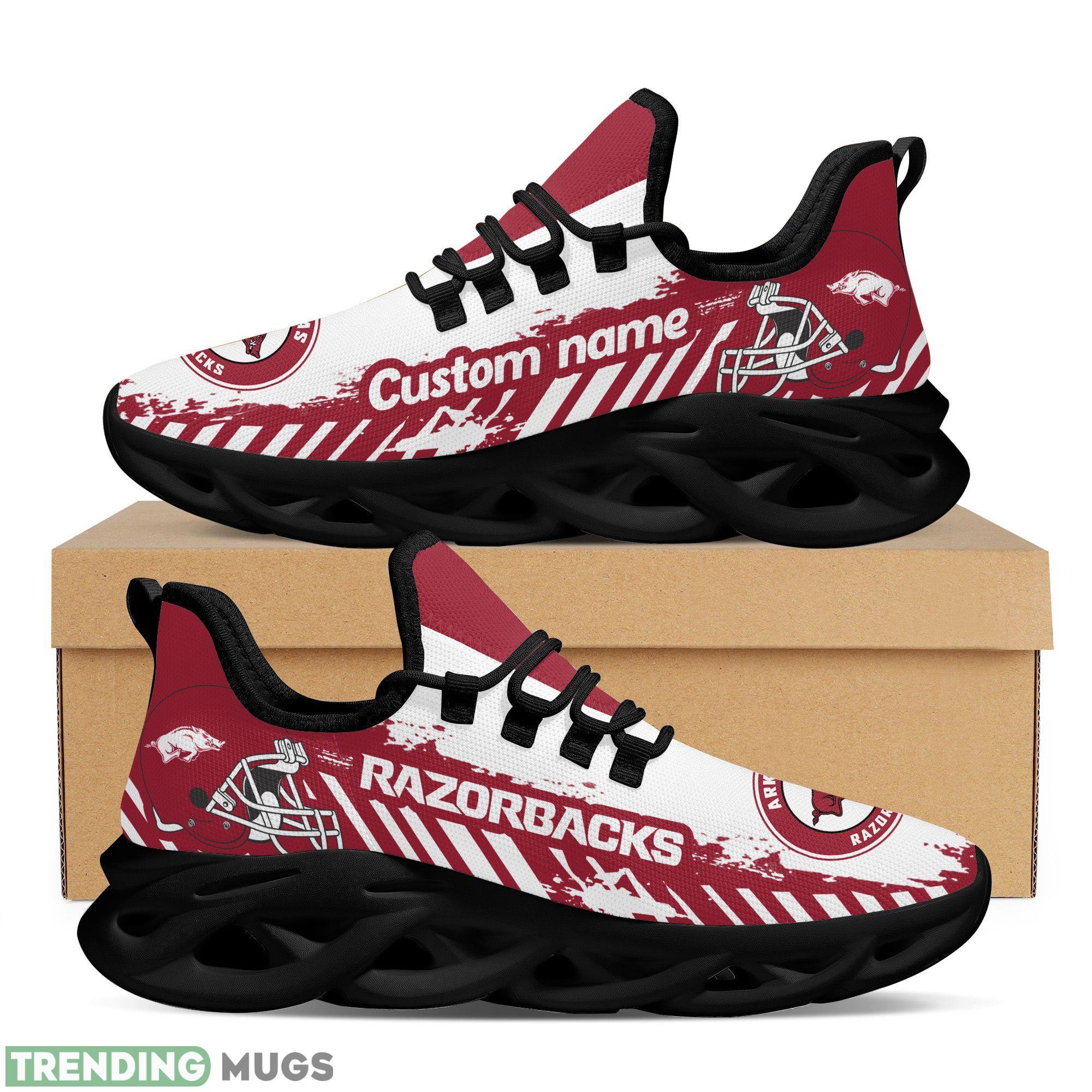 Arkansas Razorbacks Logo Helmet And Stripe Running Sneaker Custom Name Max Soul Shoes information: