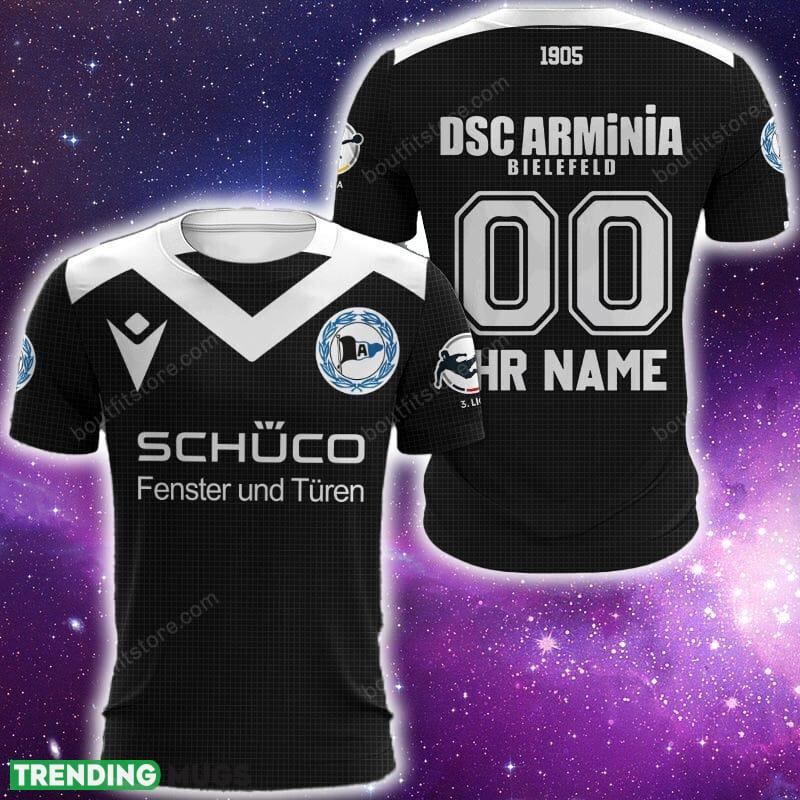 Stand out from the crowd with our Arminia Bielefeld 3D Hoodie, Zip Hoodie, T Shirt, and Sweatshirt – all customizable with your own number and name! Made with high-quality materials and featuring a unique all-over print design, these pieces are perfect for showing off your love for your favorite team in style. Whether you’re cheering from the stands or watching from home, you’ll be sure to turn heads in these eye-catching pieces. Upgrade your fan gear collection today with our custom Arminia Bielefeld apparel!