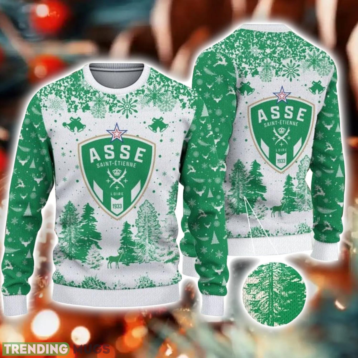 AS Saint-Etienne Big Logo Pine Trees Big Fans Gift Christmas Sweater For Men And Women Informations: