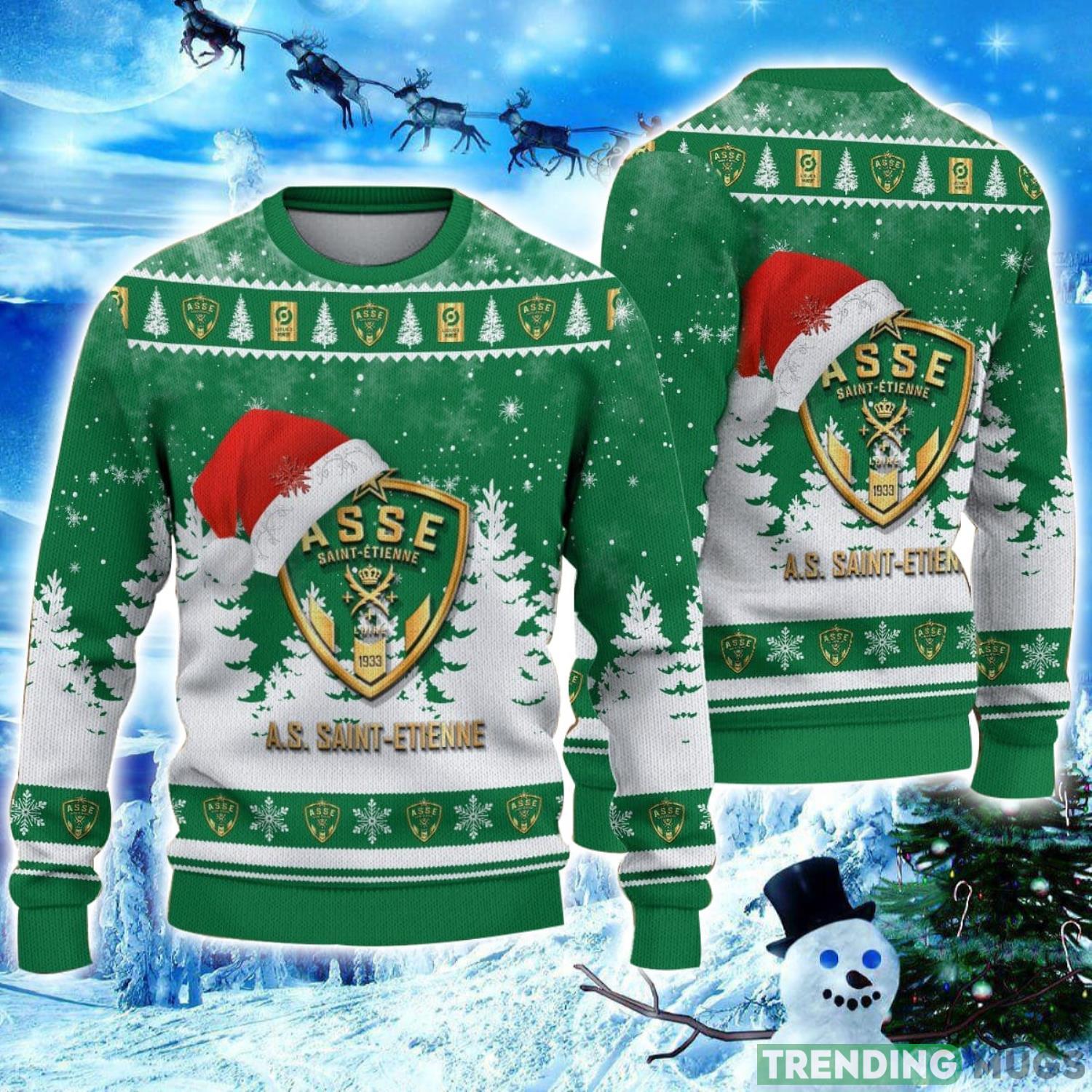 Some of the AS Saint-Etienne Logo Wearing Santa Hat Ugly Christmas Sweater Unisex 3D Christmas sweater photos