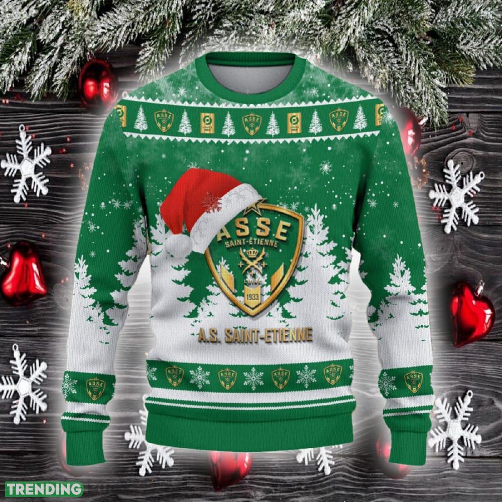 Get into the festive spirit with our AS Saint-Etienne Ugly Christmas Sweater Santa Hat Logo! This trendy Christmas gift is a must-have for all die-hard fans of AS Saint-Etienne.