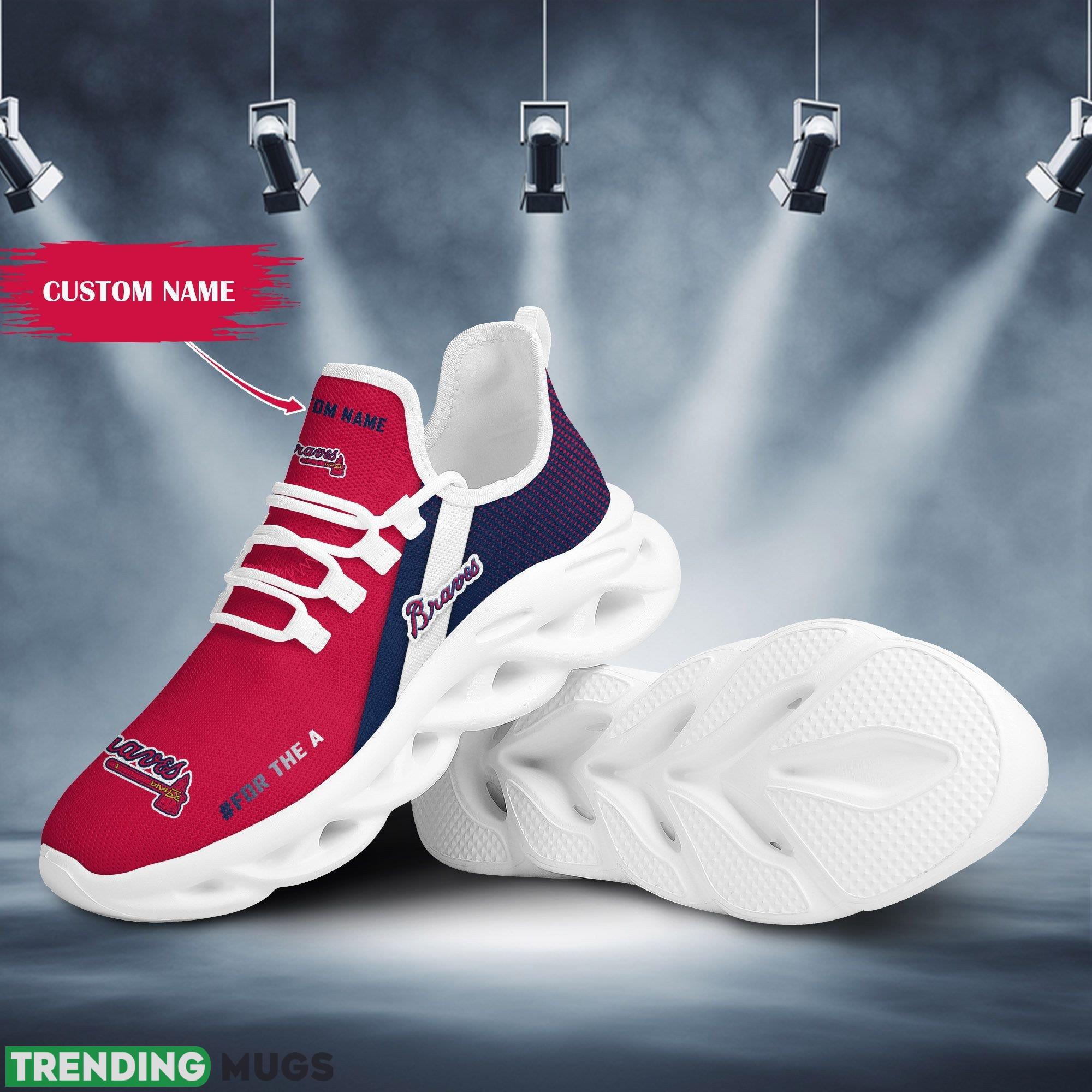 Atlanta Braves Logo Custom Name Running Sneaker Max Soul Shoes In Red Blue information: