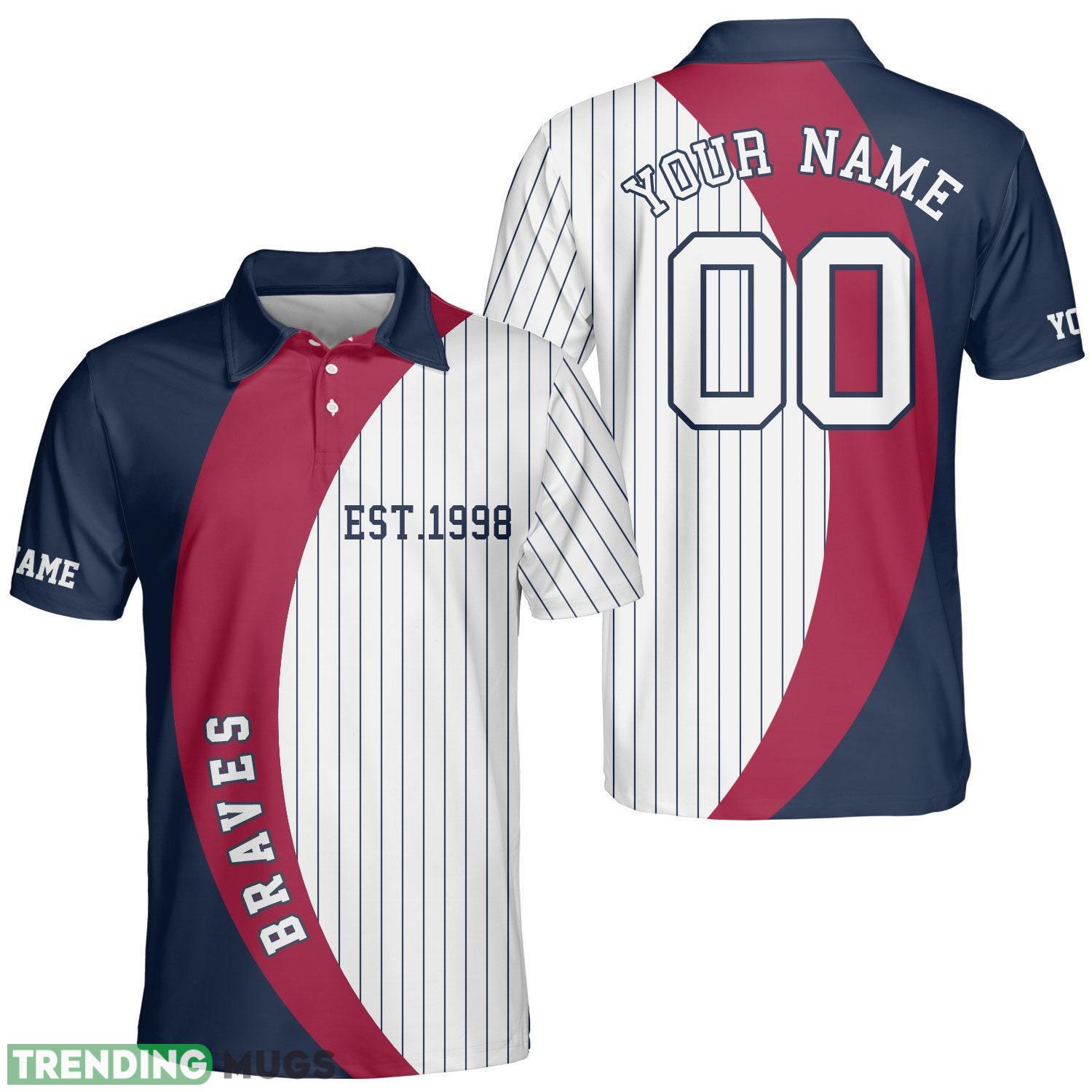 Atlanta Custom Name And Number Baseball Atlanta Polo Shirt For Atlanta Fans Striped Style Information: