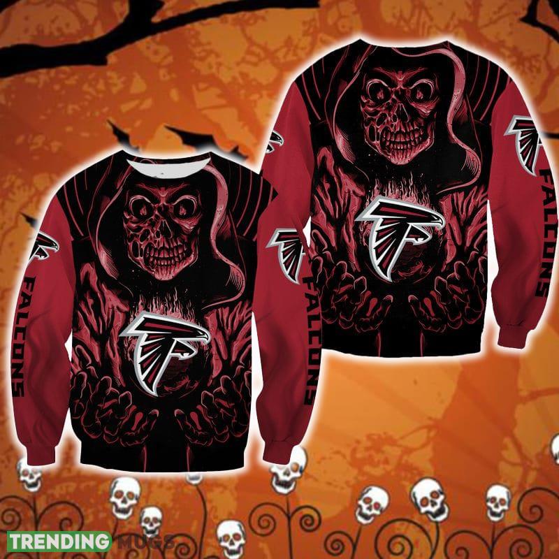 Featuring a stylish and intricate design, this sweater showcases a captivating mix of Atlanta Falcons team colors and eerie Halloween elements. The Death Halloween Skull Clothing pattern adds a touch of mystery and edginess to your outfit, making it an ideal choice for any Halloween gathering or costume party.