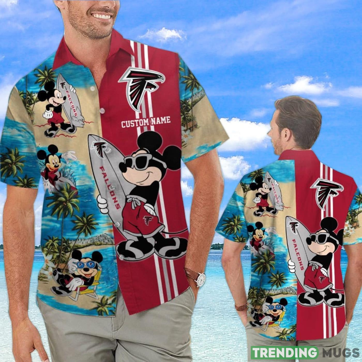 Atlanta Falcons Mickey Surfing Lover Custom Name Hawaiian Shirt Details: