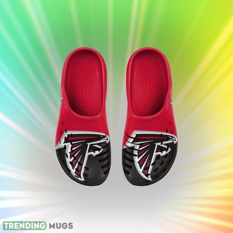 Some of the Atlanta Falcons NFL Men And Women Colorblock Big Logo Clog Shoes For Fans photos