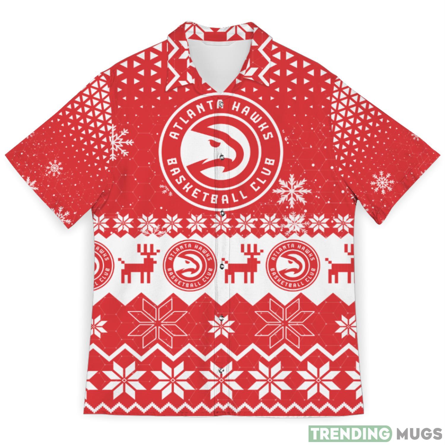 Atlanta Hawks Snowflake Pattern 3D Hawaiian Shirt Christmas Gift Details: